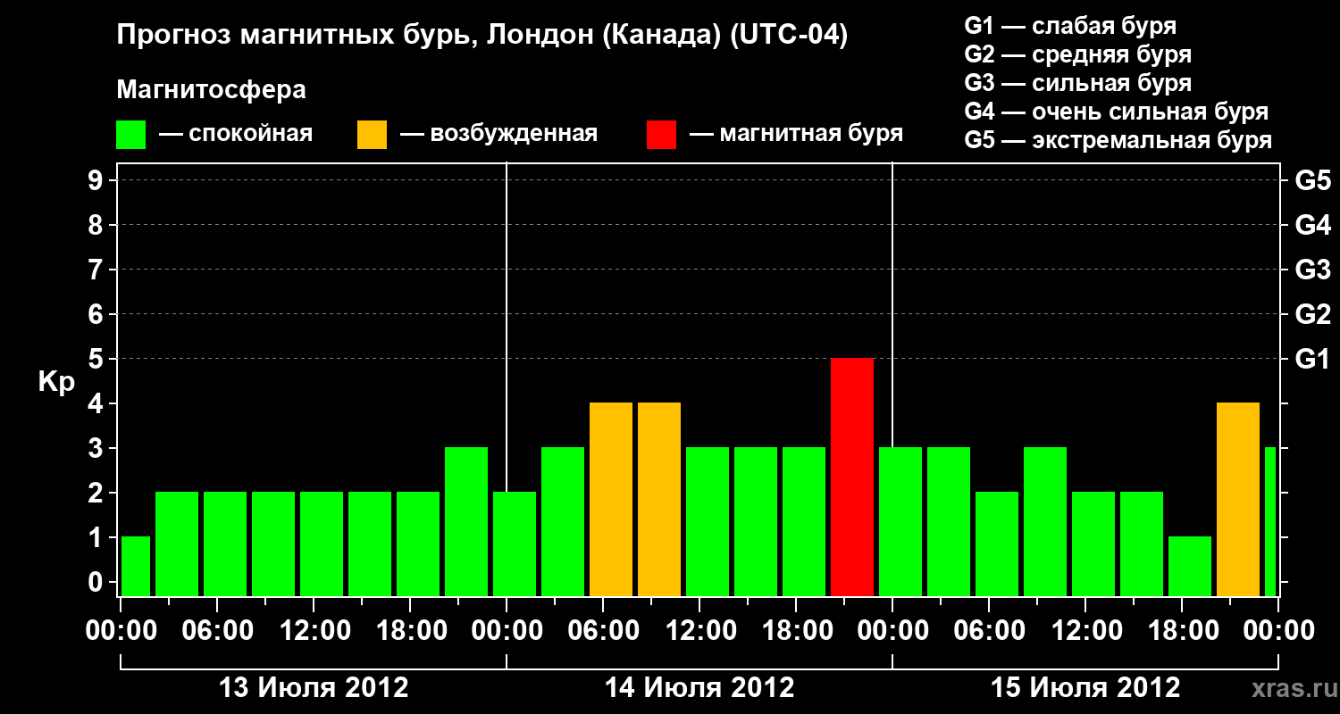 Прогноз магнитных бурь Лондоне (Канада) — 13 июля 2012 года