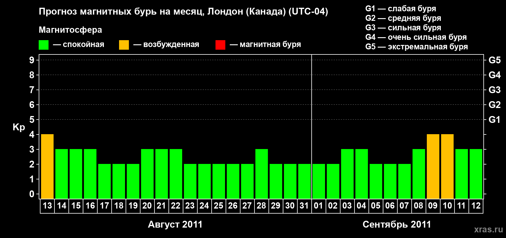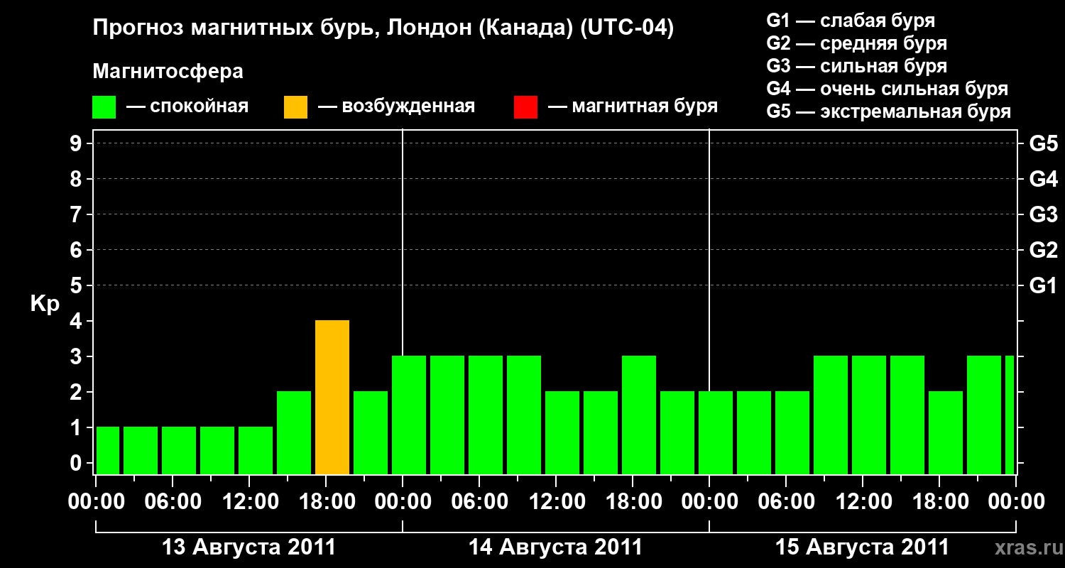 Прогноз магнитных бурь Лондоне (Канада) — 13 августа 2011 года