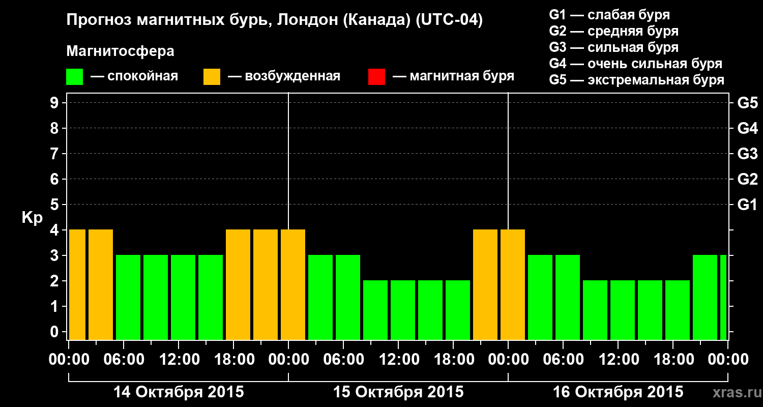Прогноз магнитных бурь Лондоне (Канада) — 14 октября 2015 года