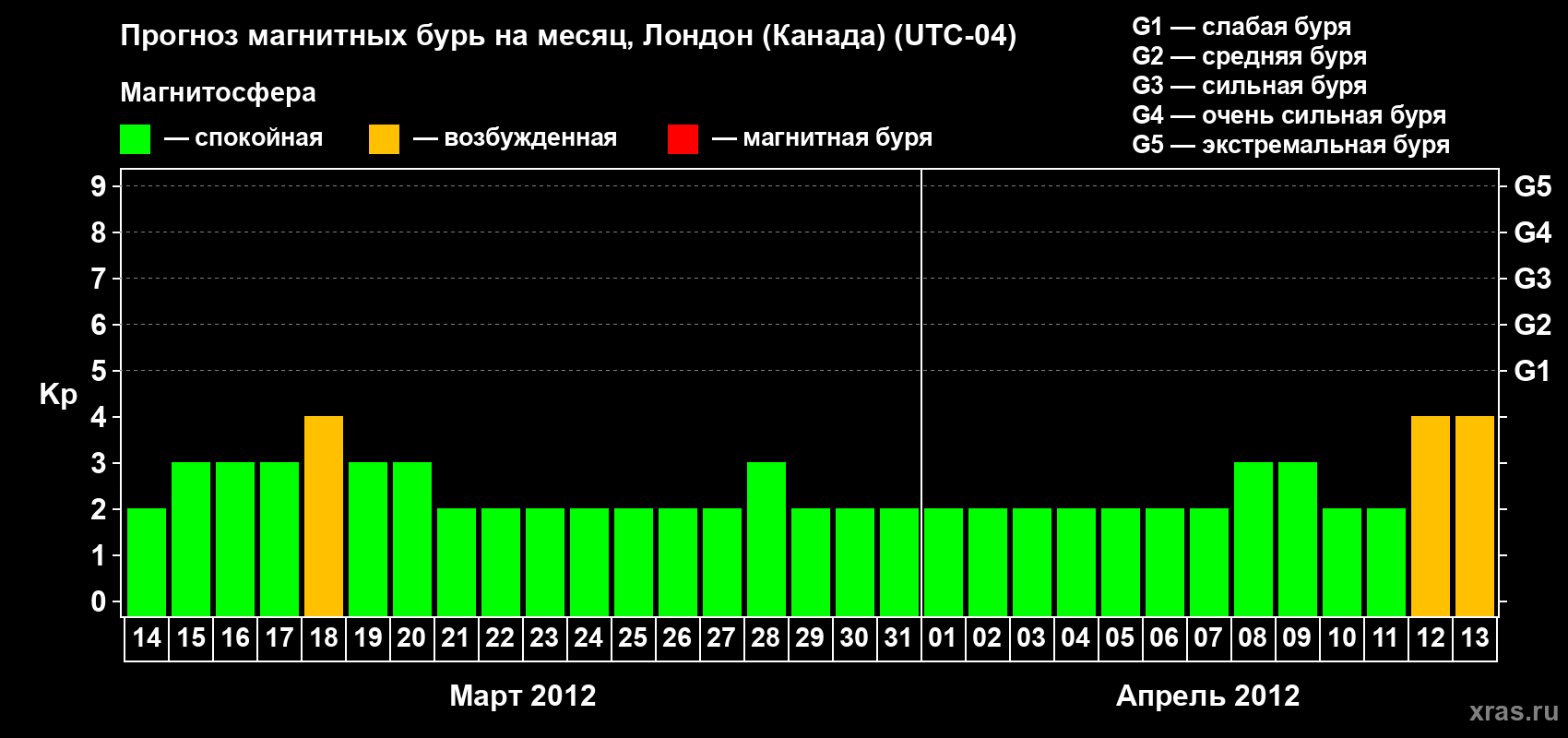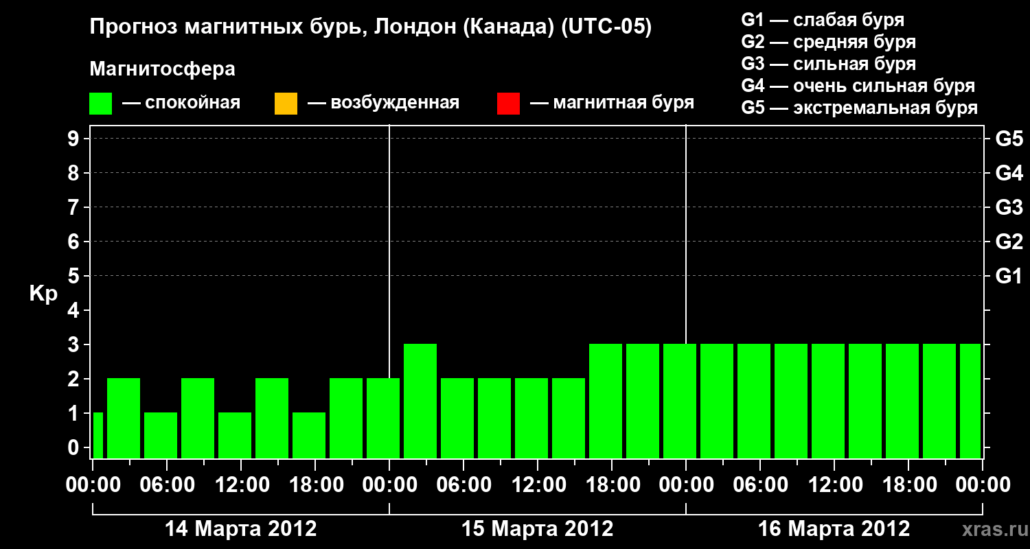 Прогноз магнитных бурь Лондоне (Канада) — 14 марта 2012 года