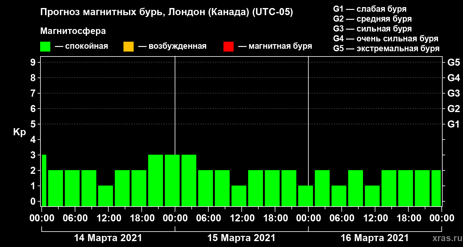 Прогноз магнитных бурь Лондоне (Канада) — 14 марта 2021 года