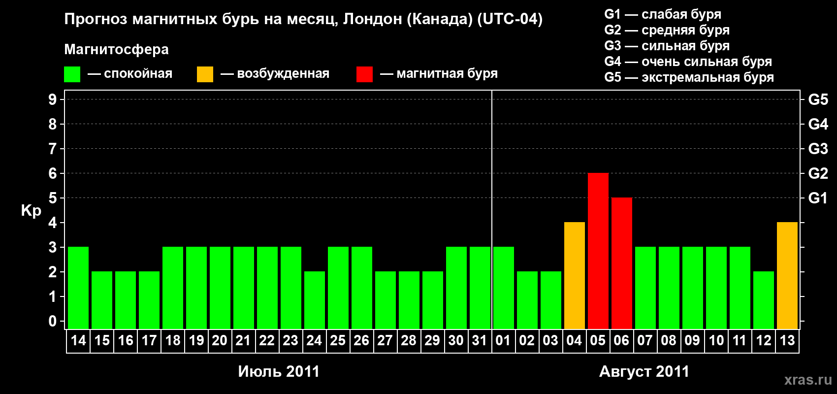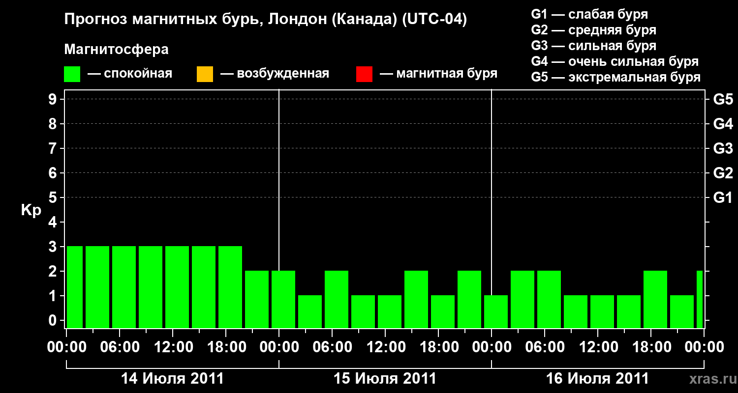 Прогноз магнитных бурь Лондоне (Канада) — 14 июля 2011 года