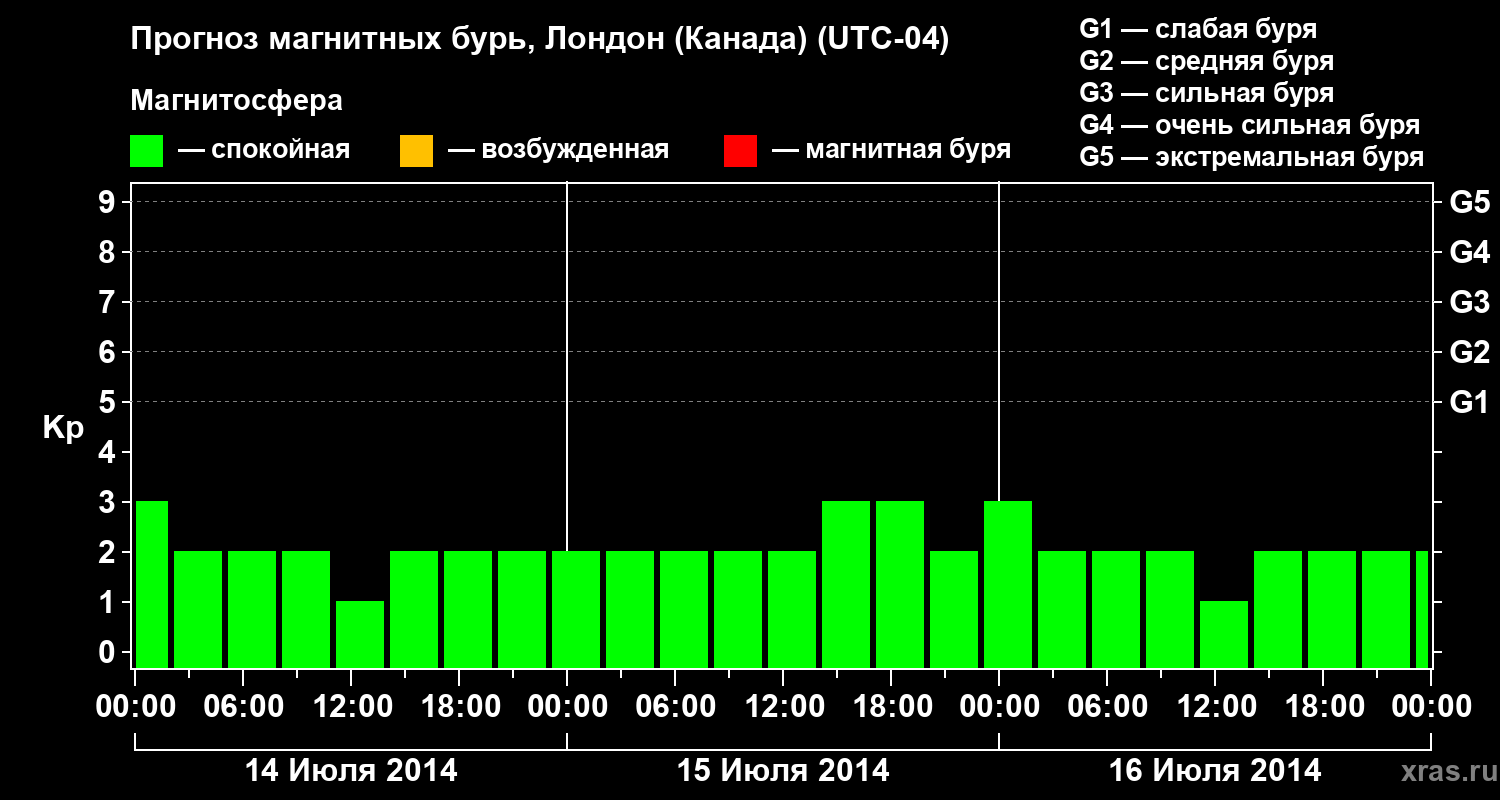 Прогноз магнитных бурь Лондоне (Канада) — 14 июля 2014 года