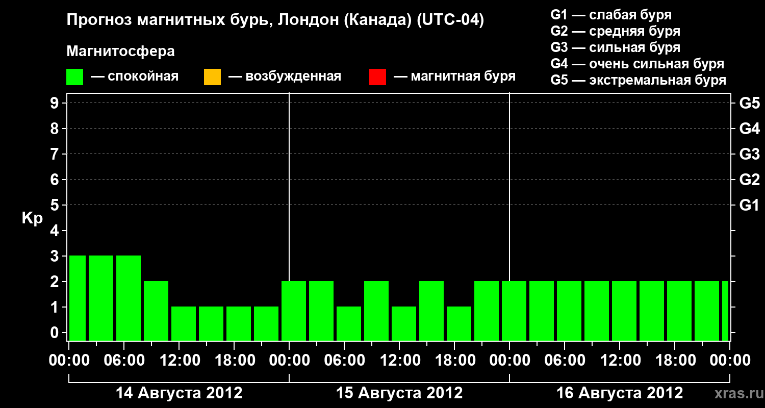 Прогноз магнитных бурь Лондоне (Канада) — 14 августа 2012 года