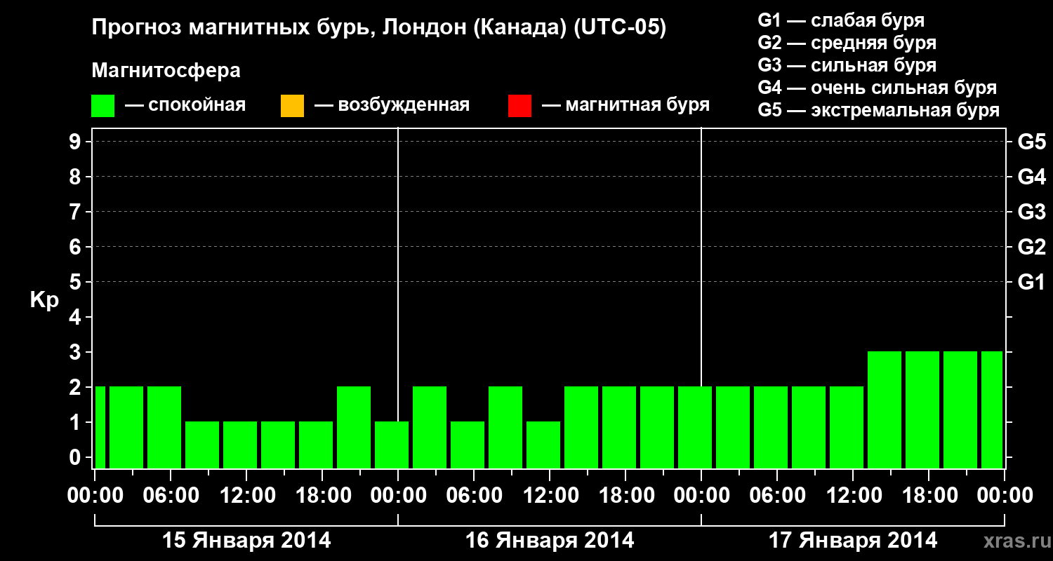 Прогноз магнитных бурь Лондоне (Канада) — 15 января 2014 года