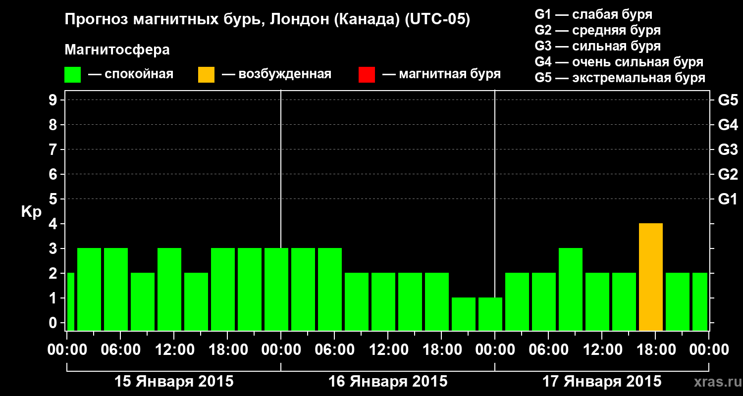 Прогноз магнитных бурь Лондоне (Канада) на 15 января 2015 года