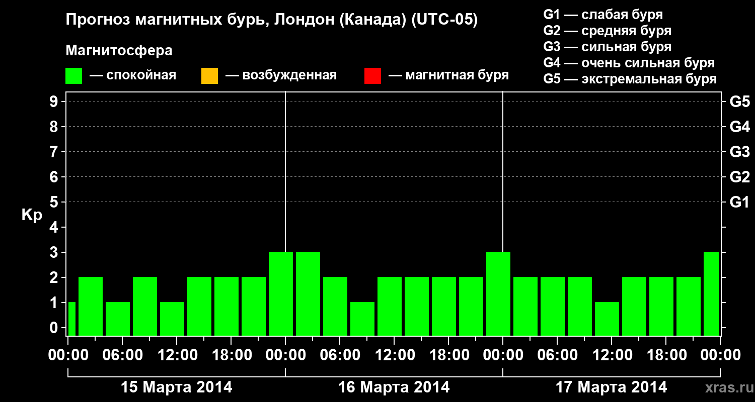Прогноз магнитных бурь Лондоне (Канада) — 15 марта 2014 года