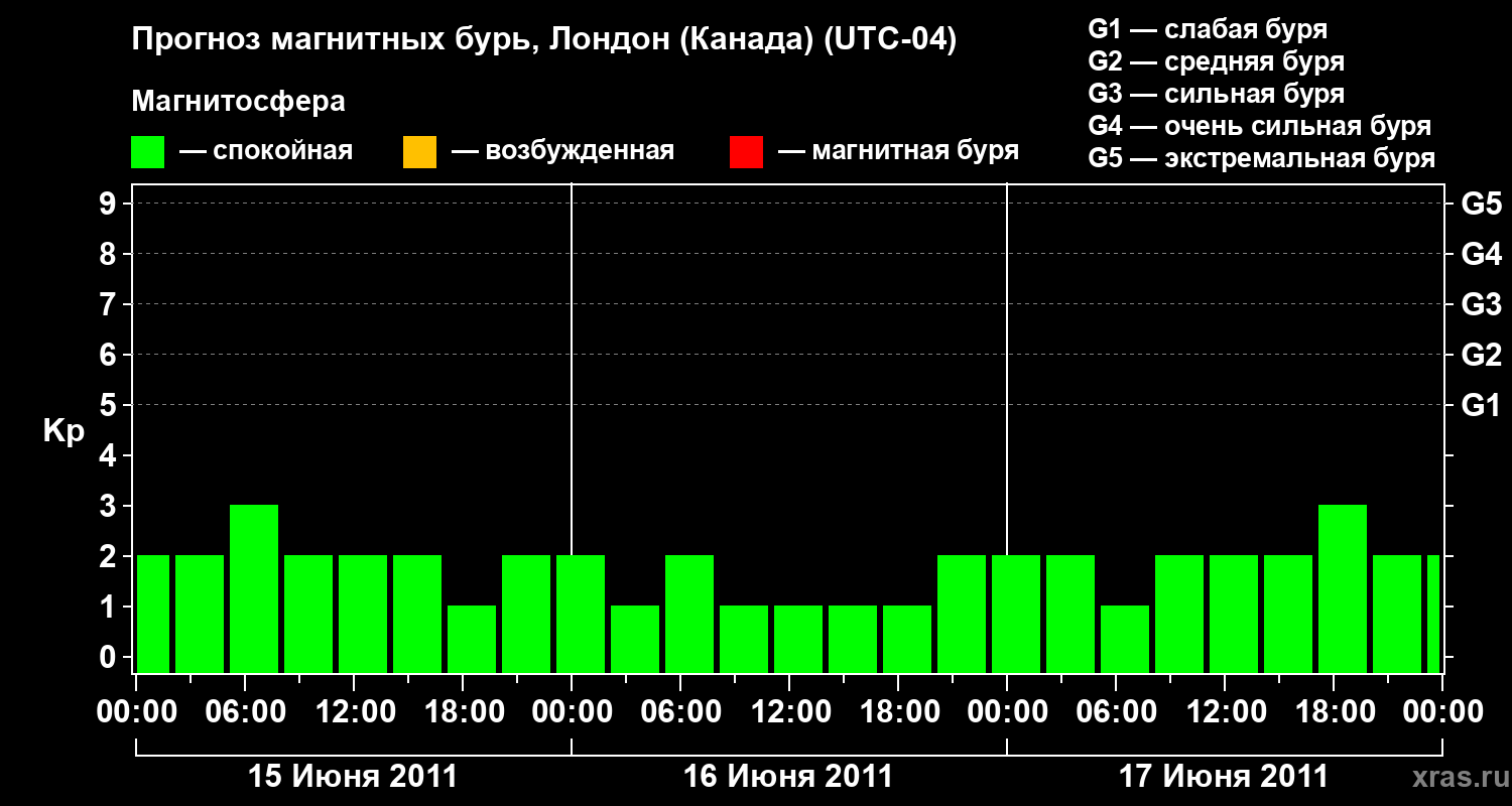 Прогноз магнитных бурь Лондоне (Канада) — 15 июня 2011 года