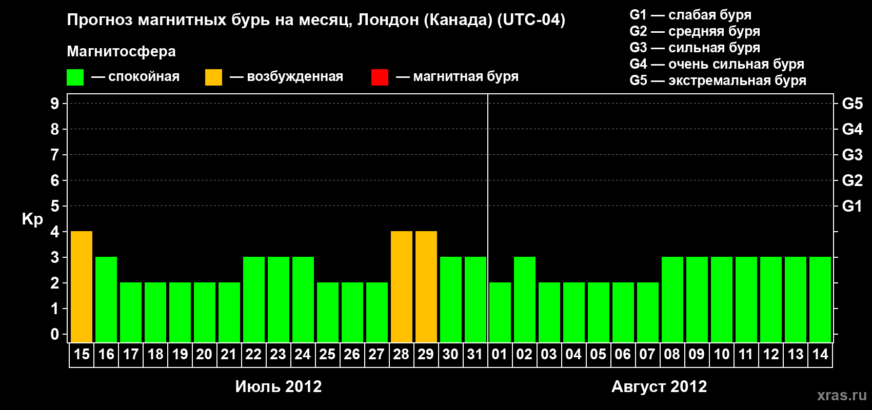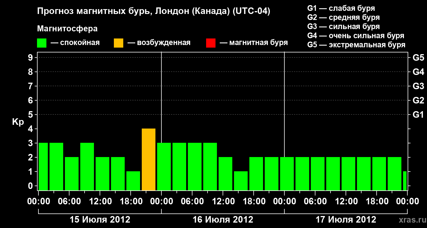 Прогноз магнитных бурь Лондоне (Канада) — 15 июля 2012 года