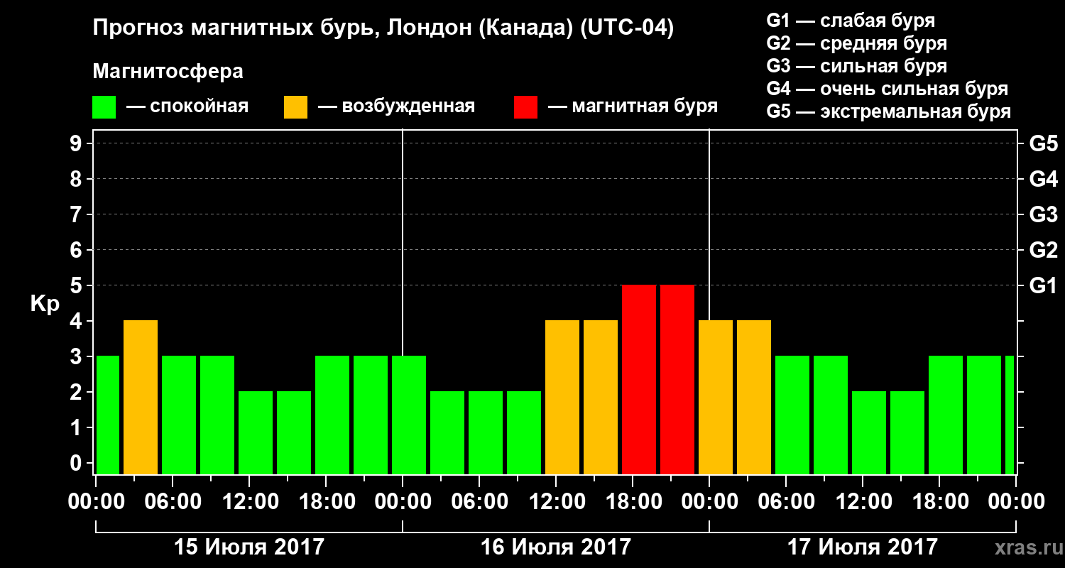 Прогноз магнитных бурь Лондоне (Канада) — 15 июля 2017 года