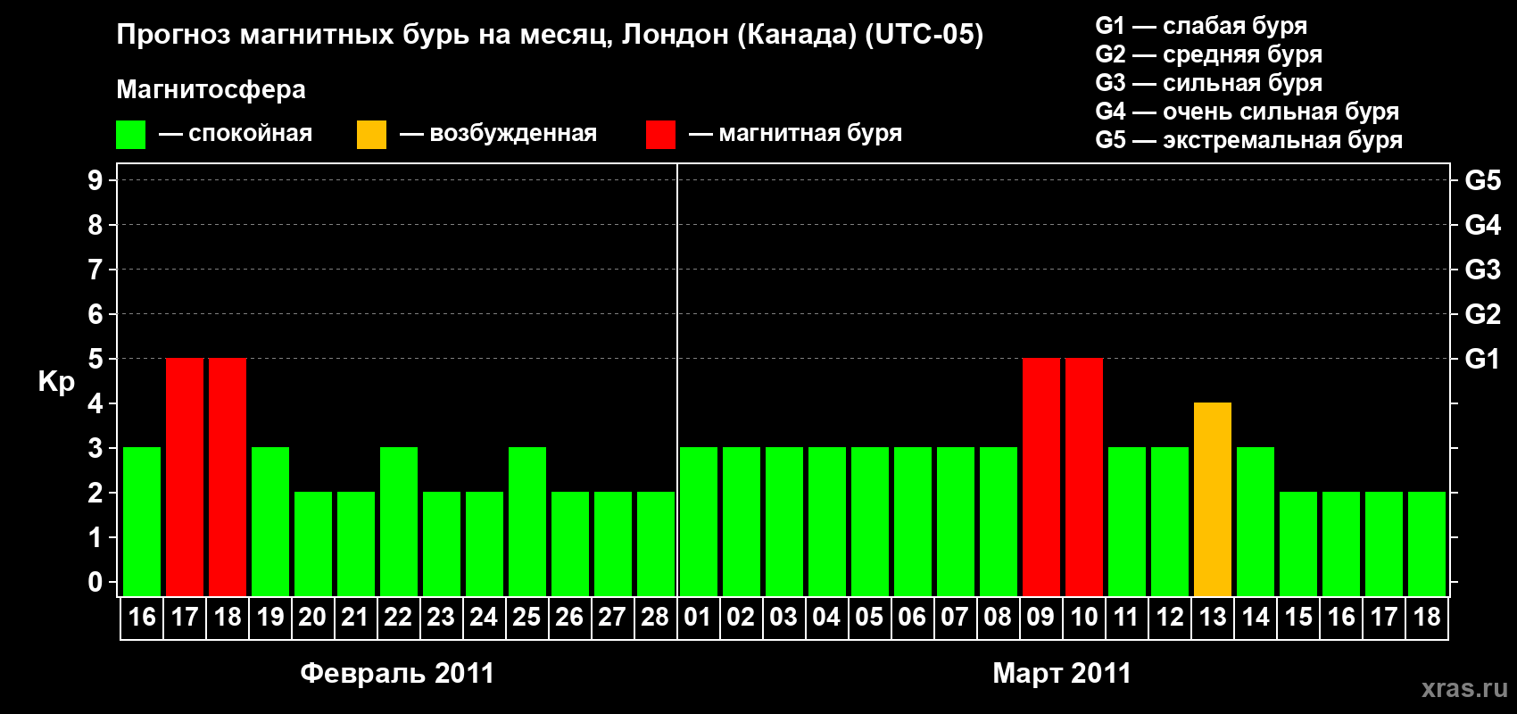 Прогноз магнитных бурь Лондоне (Канада) — 16 февраля 2011 года