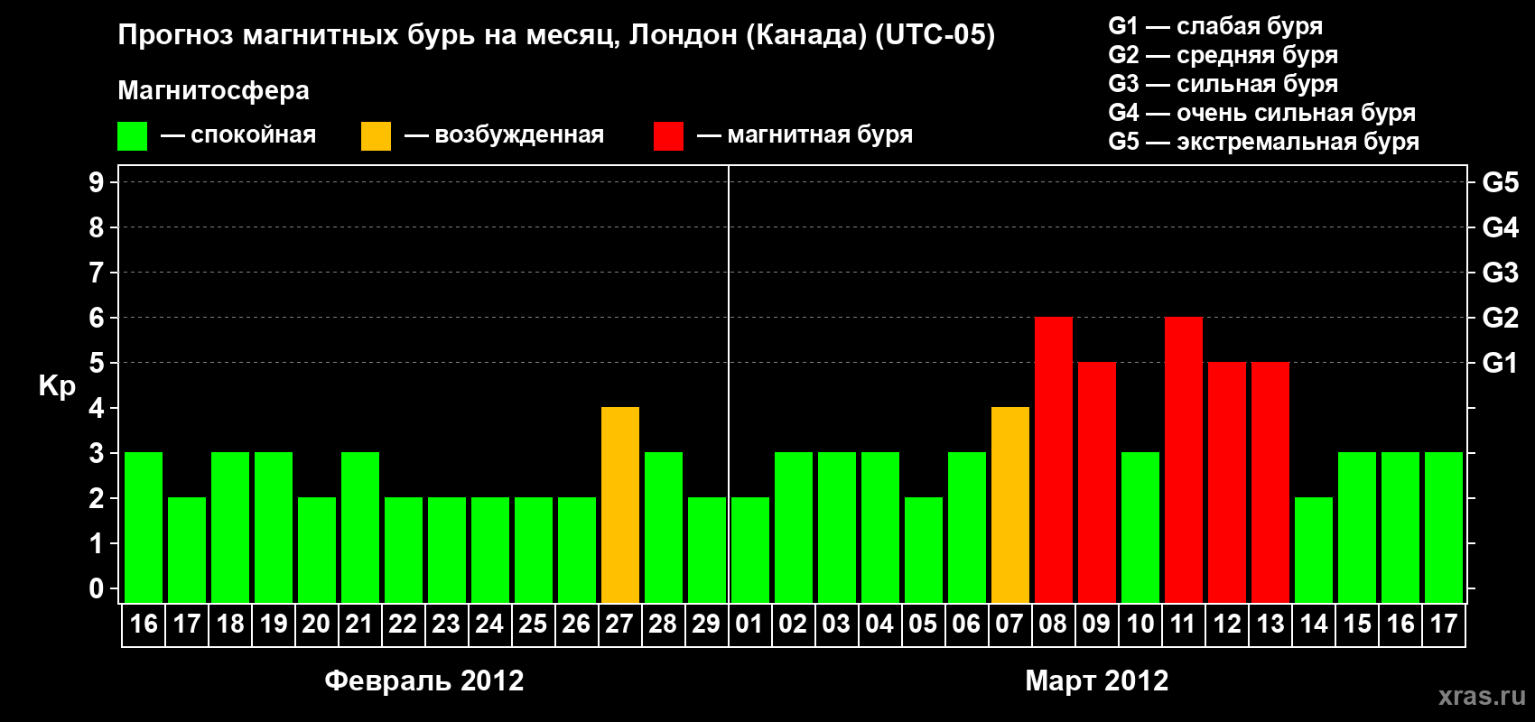 Прогноз магнитных бурь Лондоне (Канада) — 16 февраля 2012 года