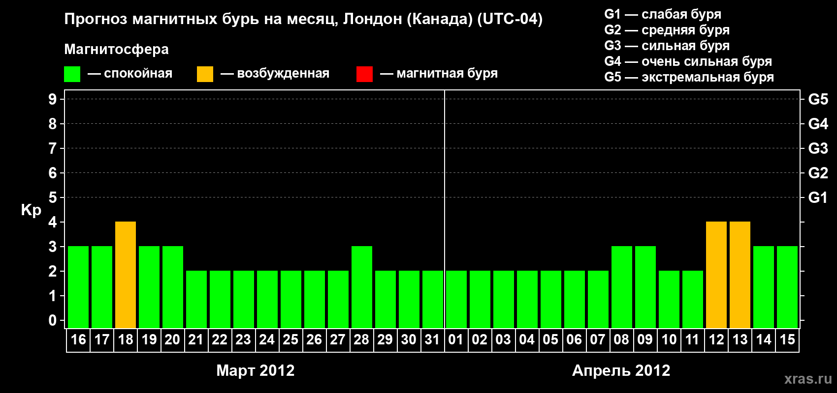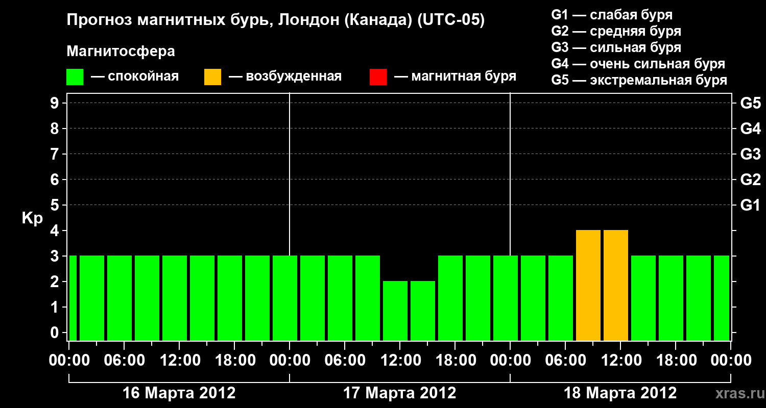 Прогноз магнитных бурь Лондоне (Канада) — 16 марта 2012 года