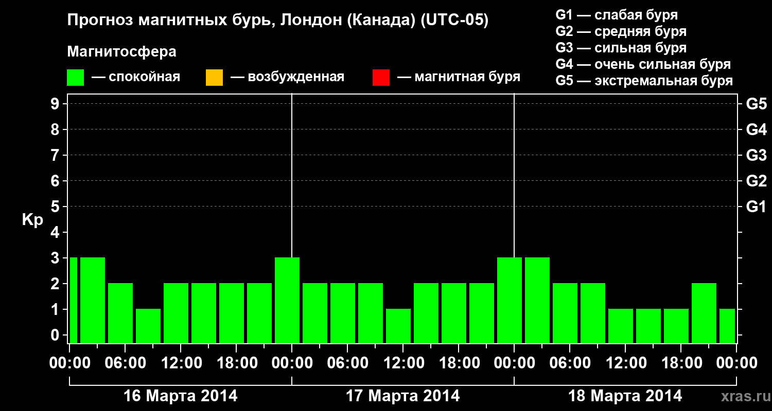 Прогноз магнитных бурь Лондоне (Канада) — 16 марта 2014 года