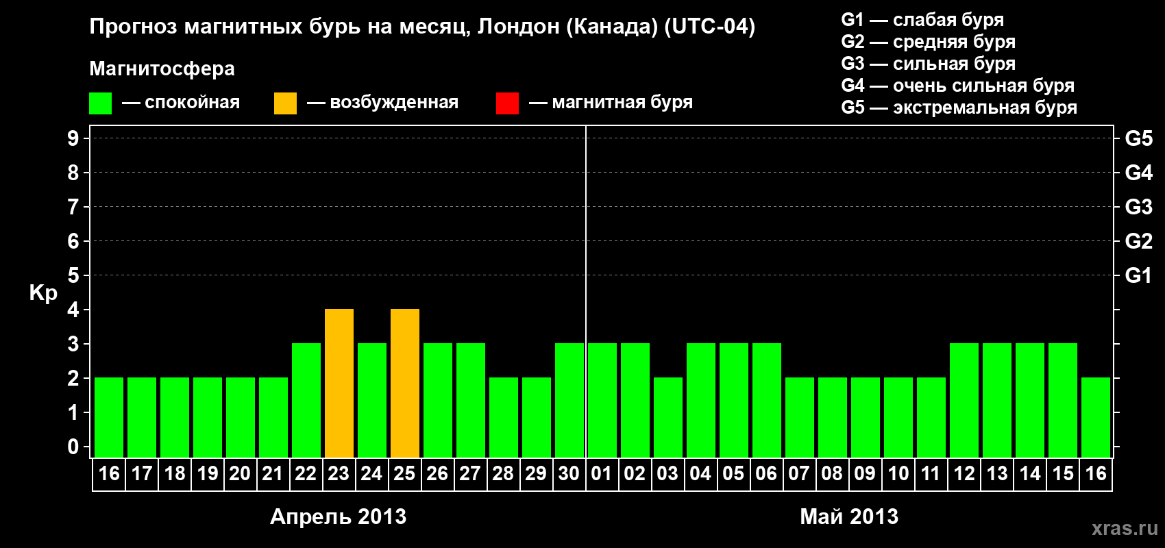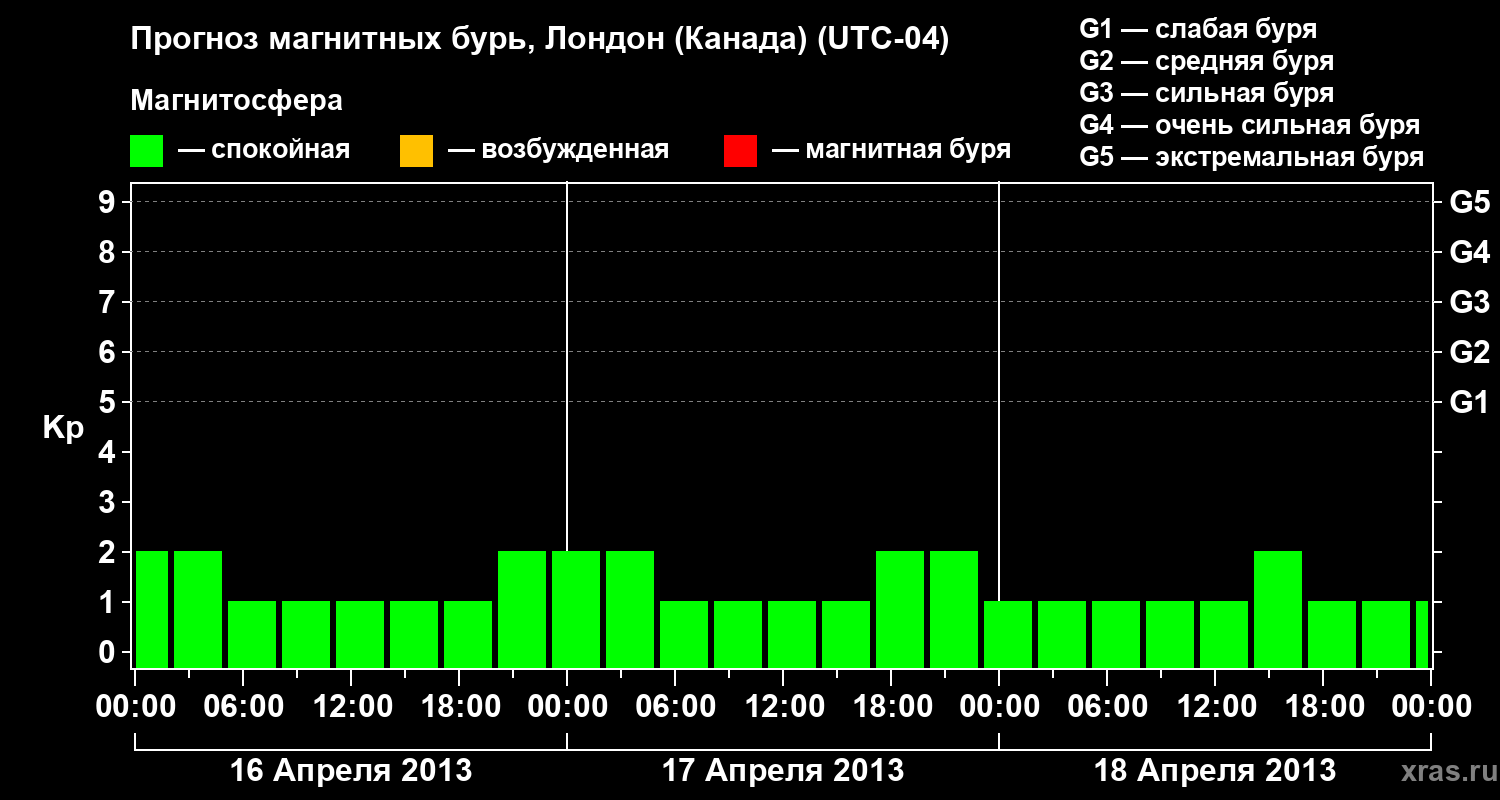 Прогноз магнитных бурь Лондоне (Канада) — 16 апреля 2013 года