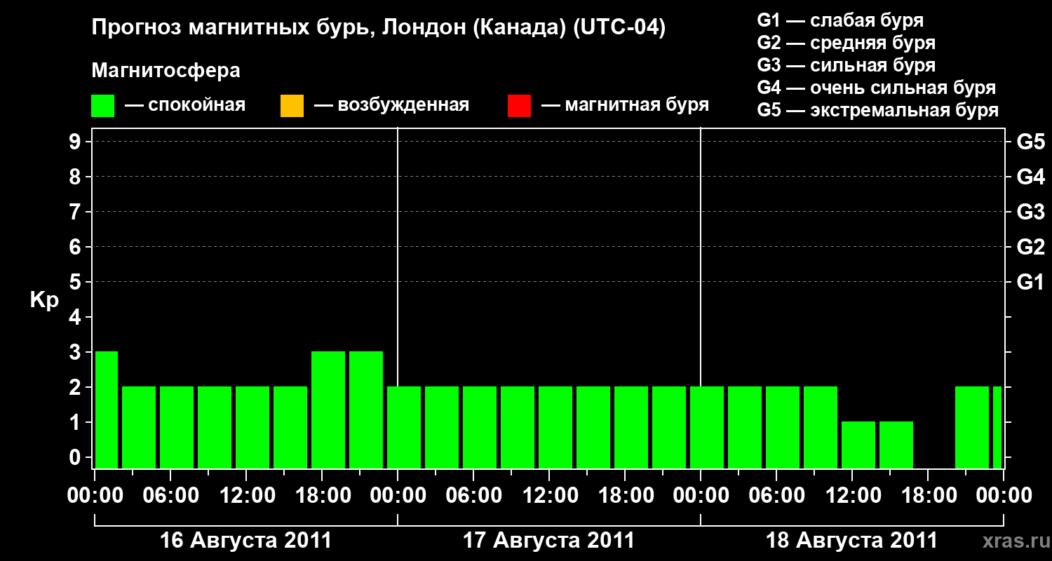 Прогноз магнитных бурь Лондоне (Канада) — 16 августа 2011 года