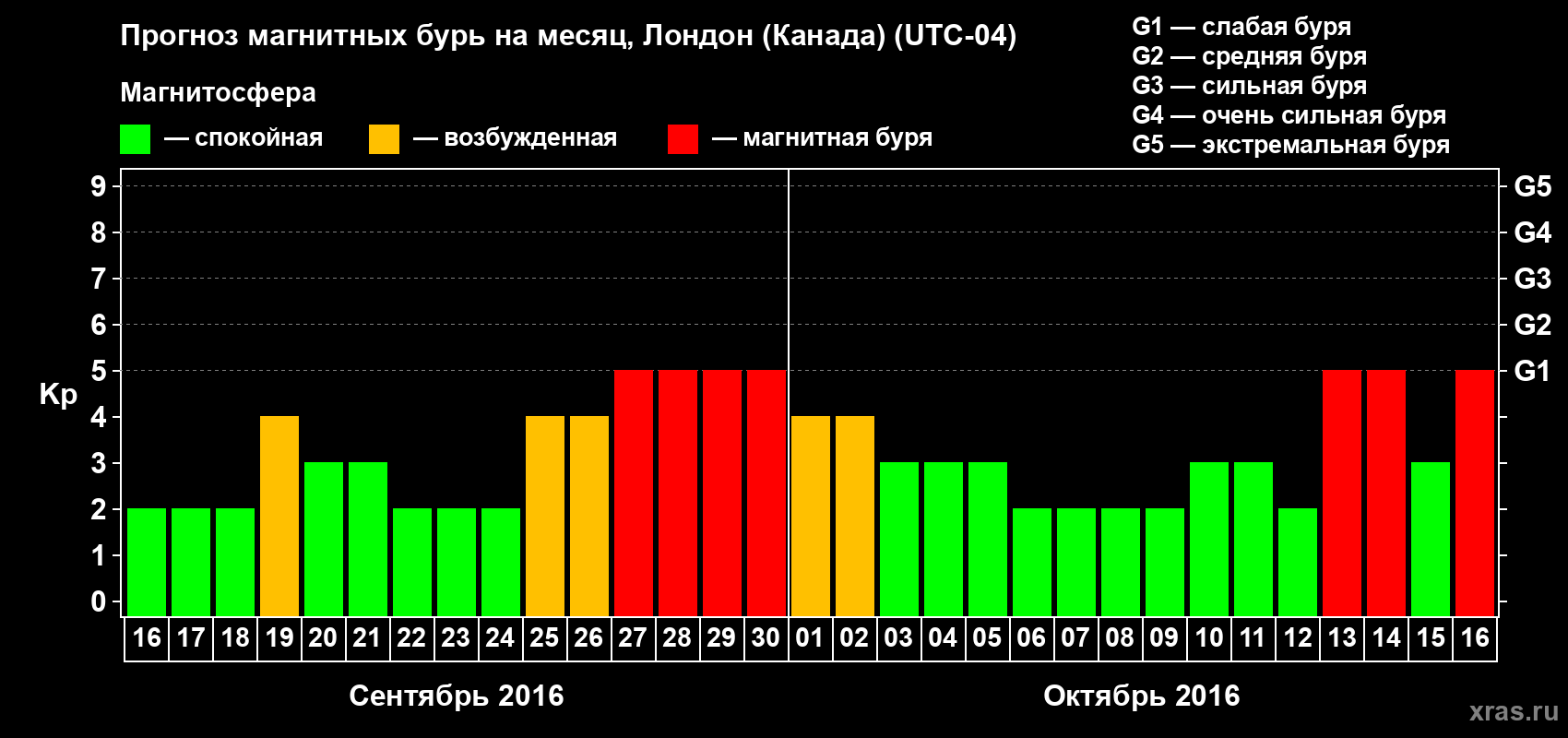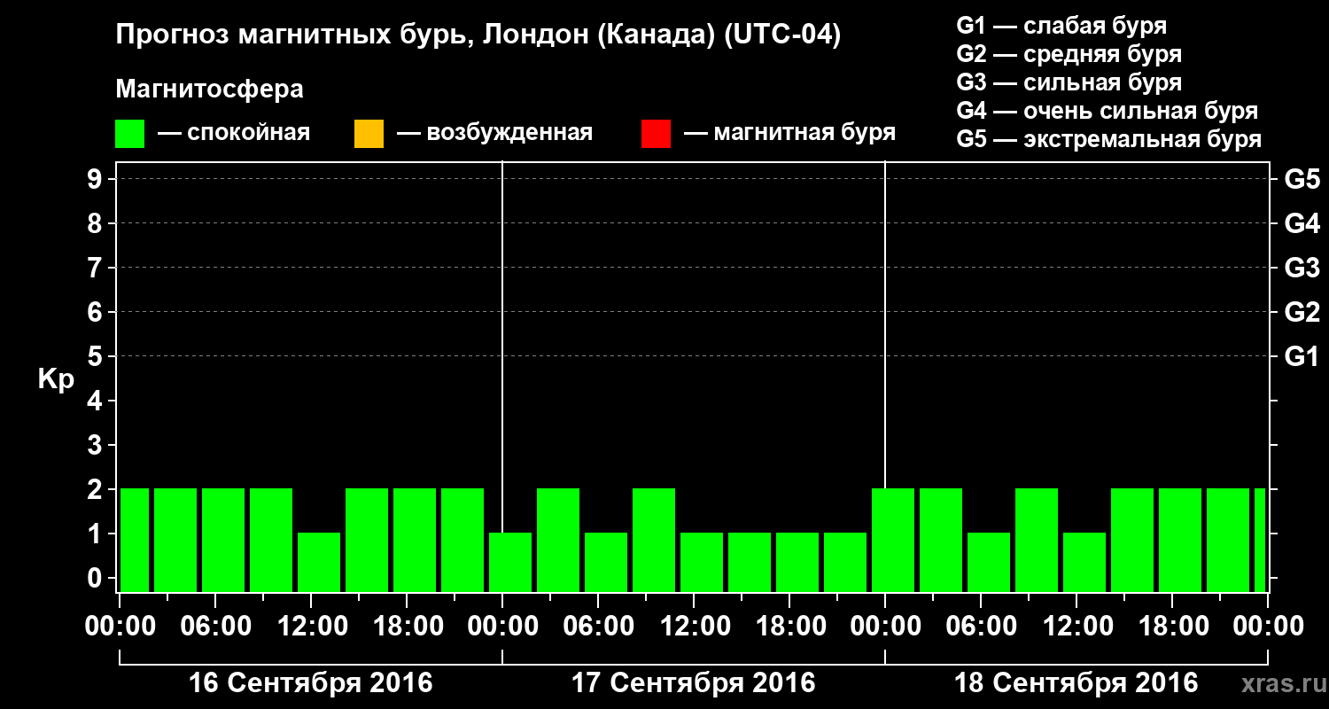 Прогноз магнитных бурь Лондоне (Канада) — 16 сентября 2016 года