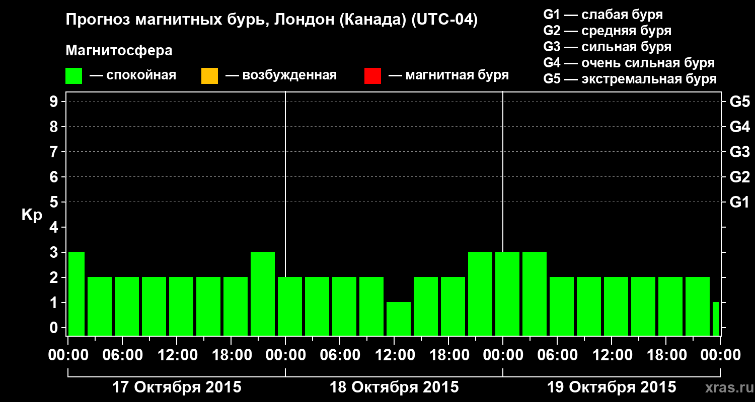 Прогноз магнитных бурь Лондоне (Канада) — 17 октября 2015 года
