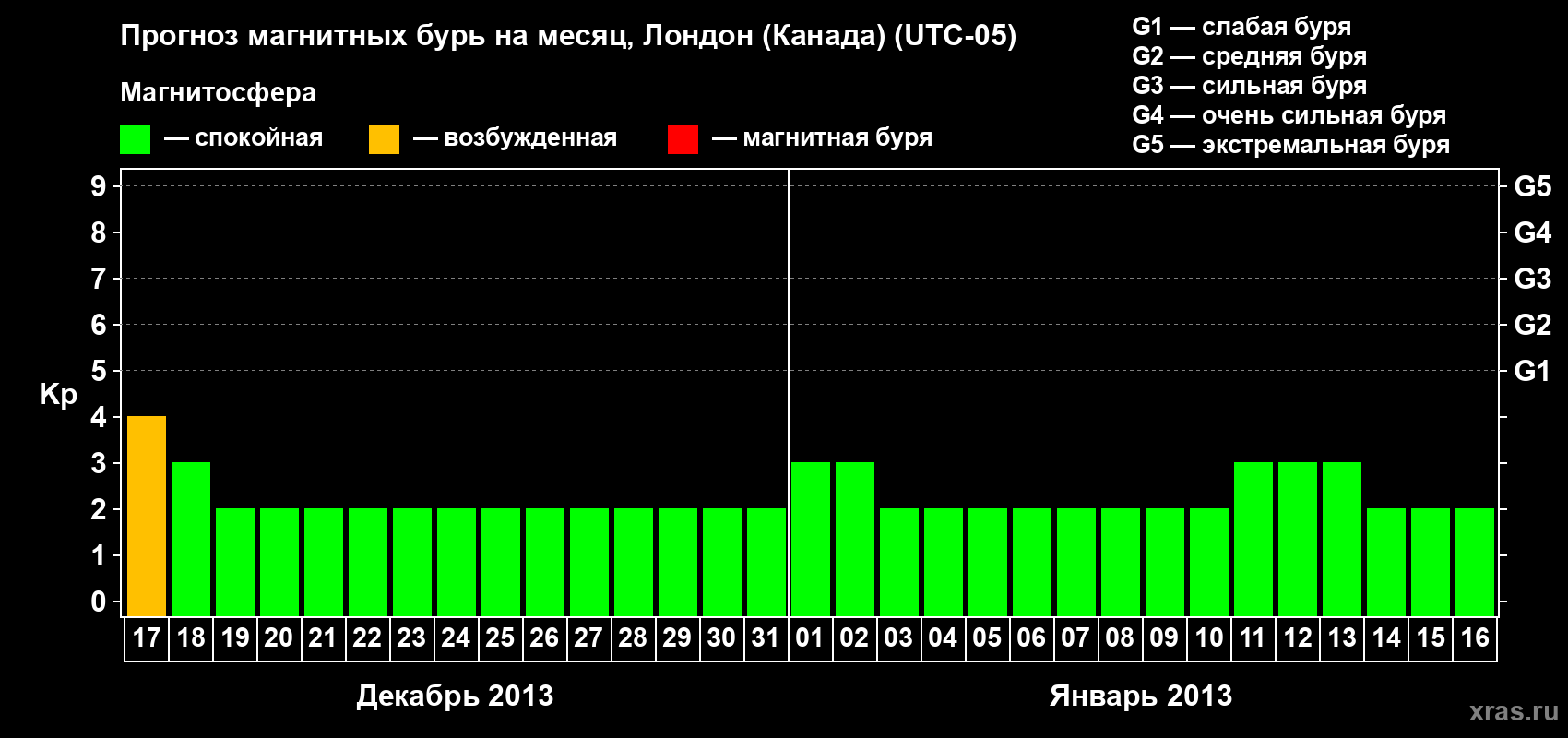 Прогноз магнитных бурь Лондоне (Канада) — 17 декабря 2012 года