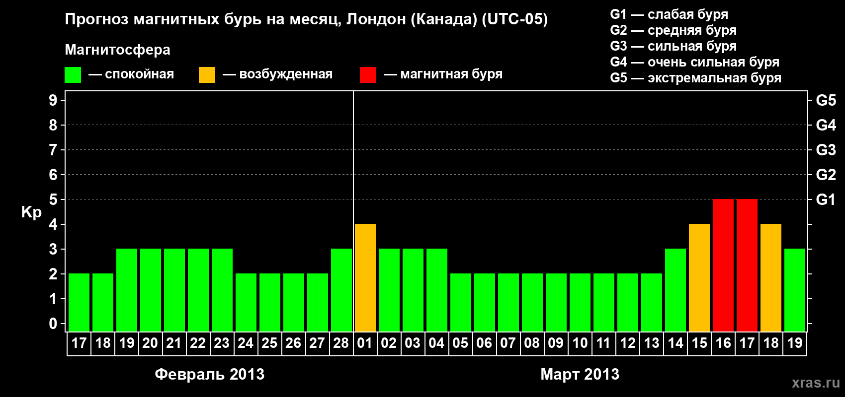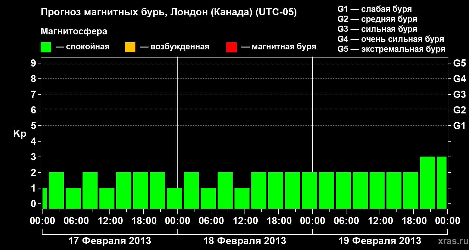 Прогноз магнитных бурь Лондоне (Канада) — 17 февраля 2013 года