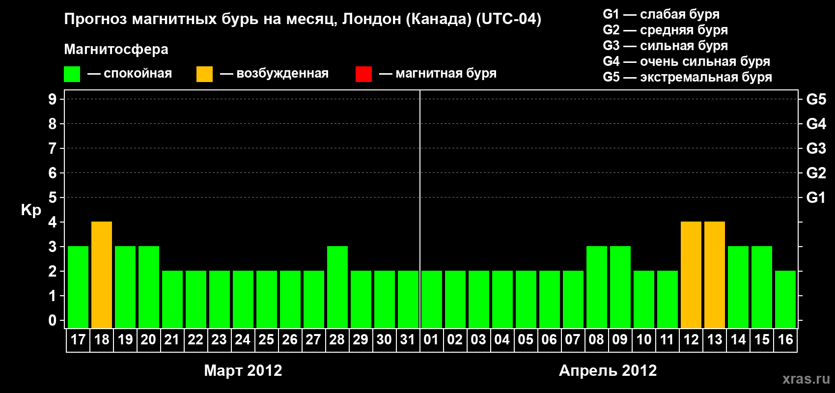 Прогноз магнитных бурь Лондоне (Канада) — 17 марта 2012 года