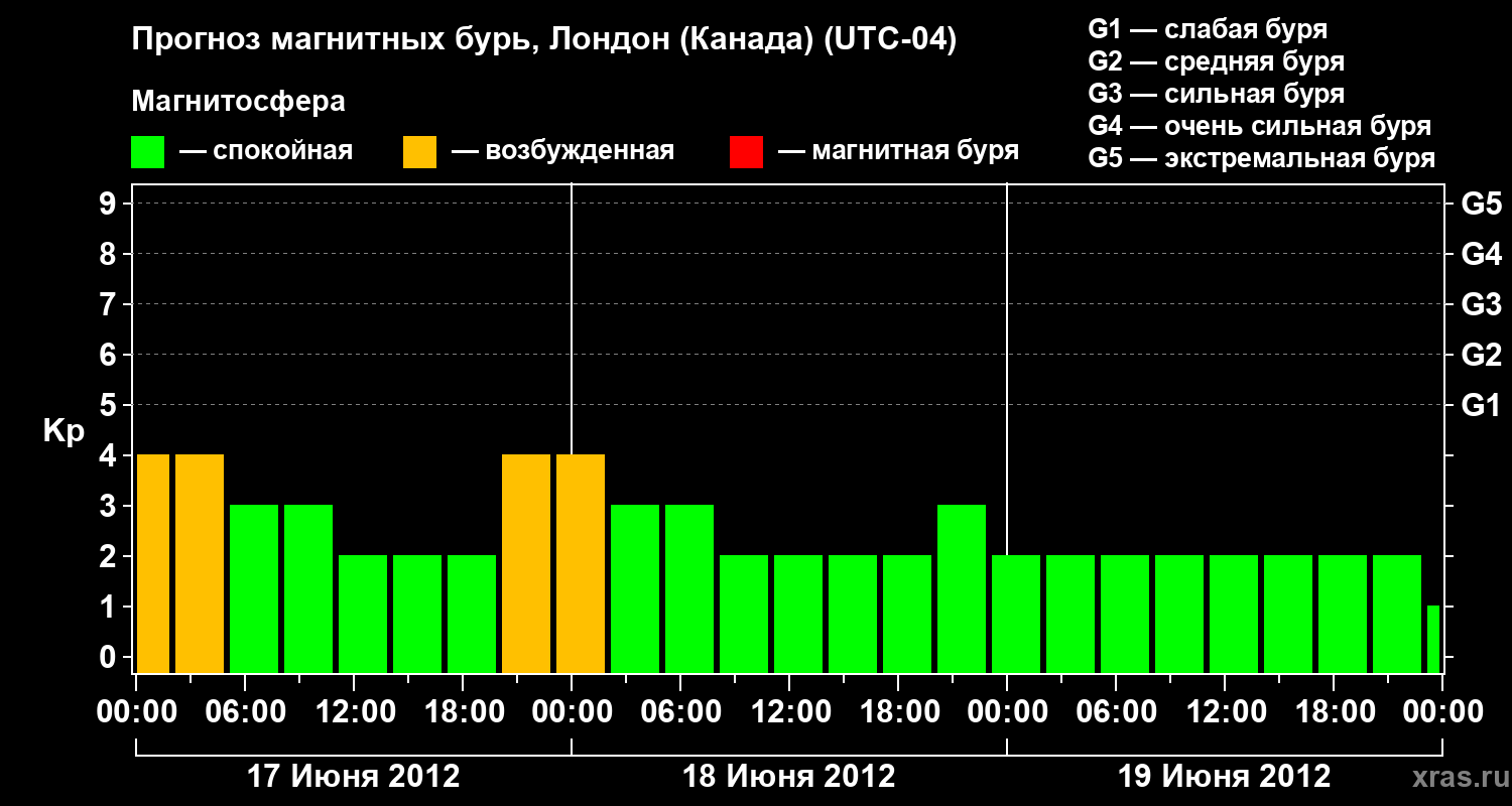 Прогноз магнитных бурь Лондоне (Канада) — 17 июня 2012 года