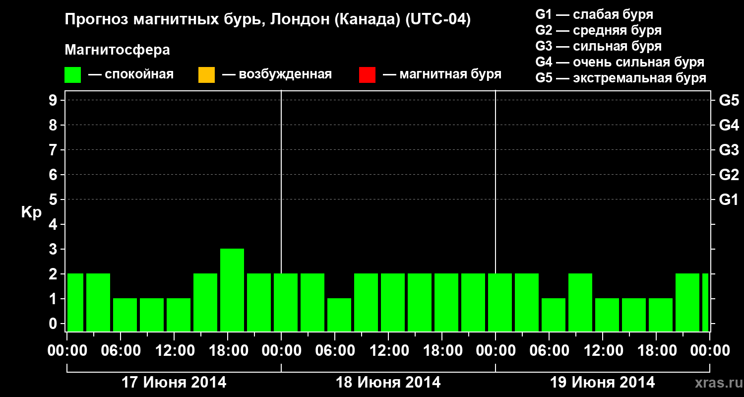 Прогноз магнитных бурь Лондоне (Канада) — 17 июня 2014 года