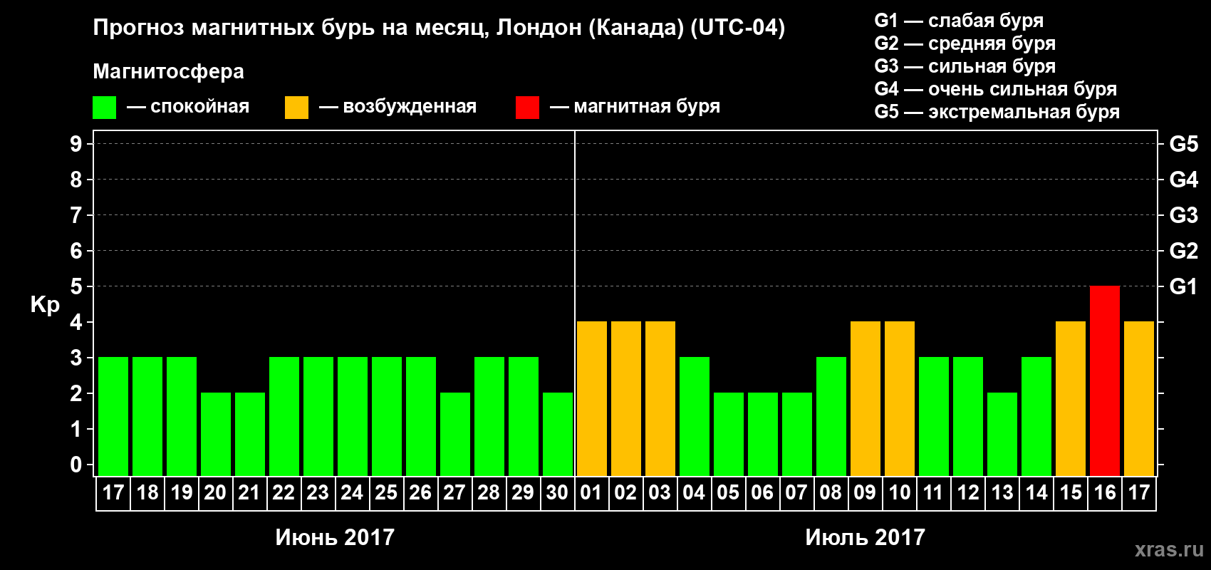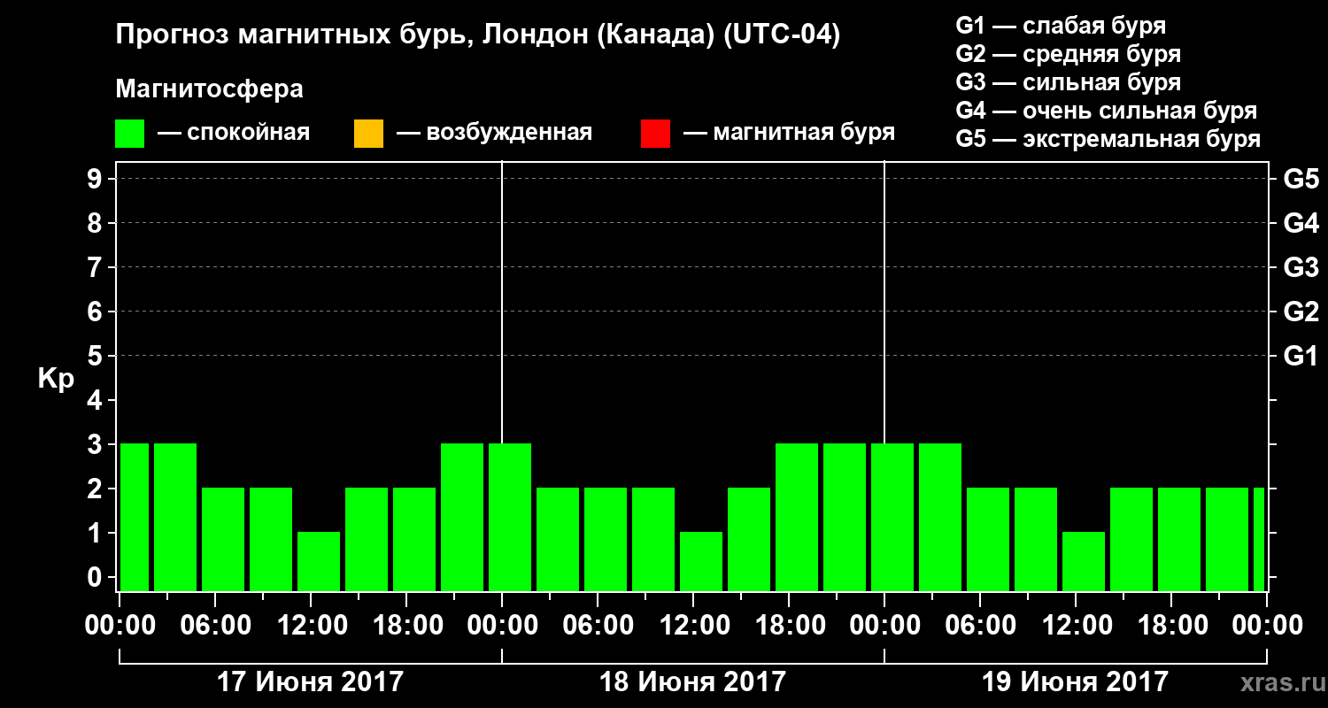 Прогноз магнитных бурь Лондоне (Канада) — 17 июня 2017 года