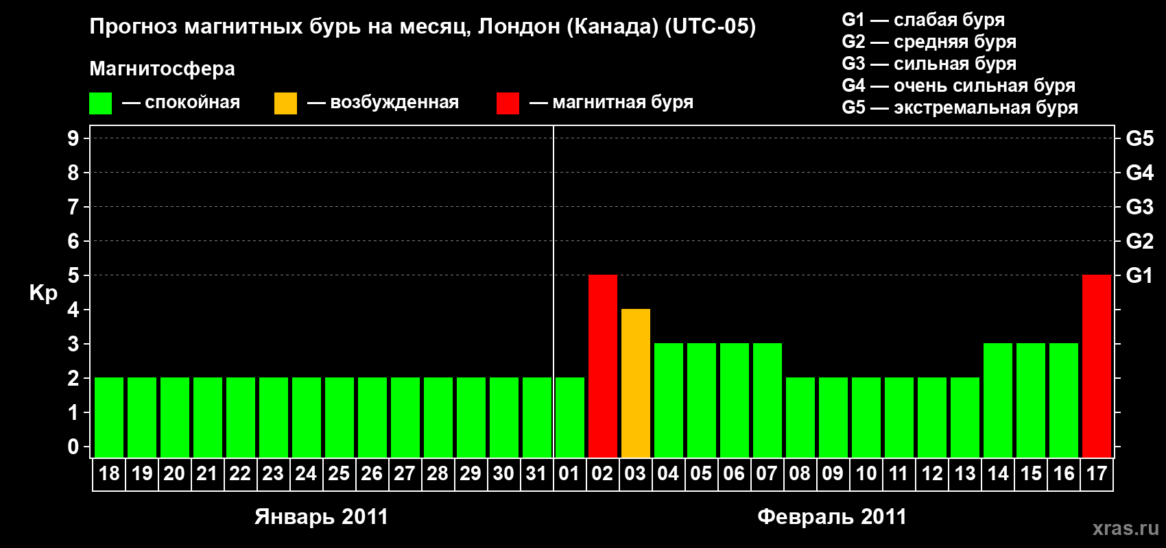 Прогноз магнитных бурь Лондоне (Канада) — 18 января 2011 года