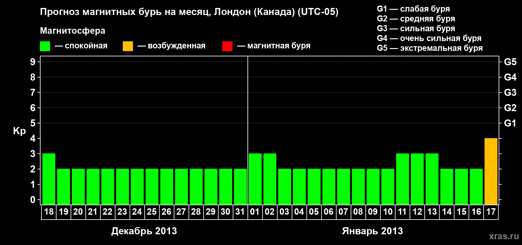 Прогноз магнитных бурь Лондоне (Канада) — 18 декабря 2012 года