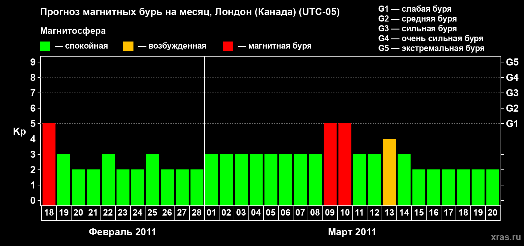 Прогноз магнитных бурь Лондоне (Канада) — 18 февраля 2011 года