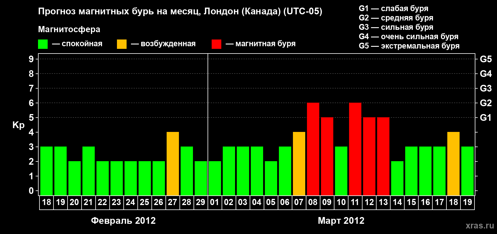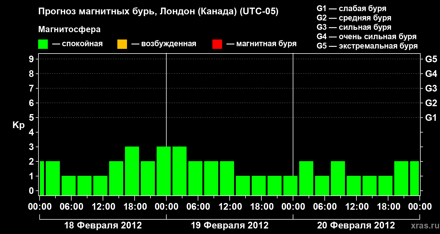Прогноз магнитных бурь Лондоне (Канада) — 18 февраля 2012 года