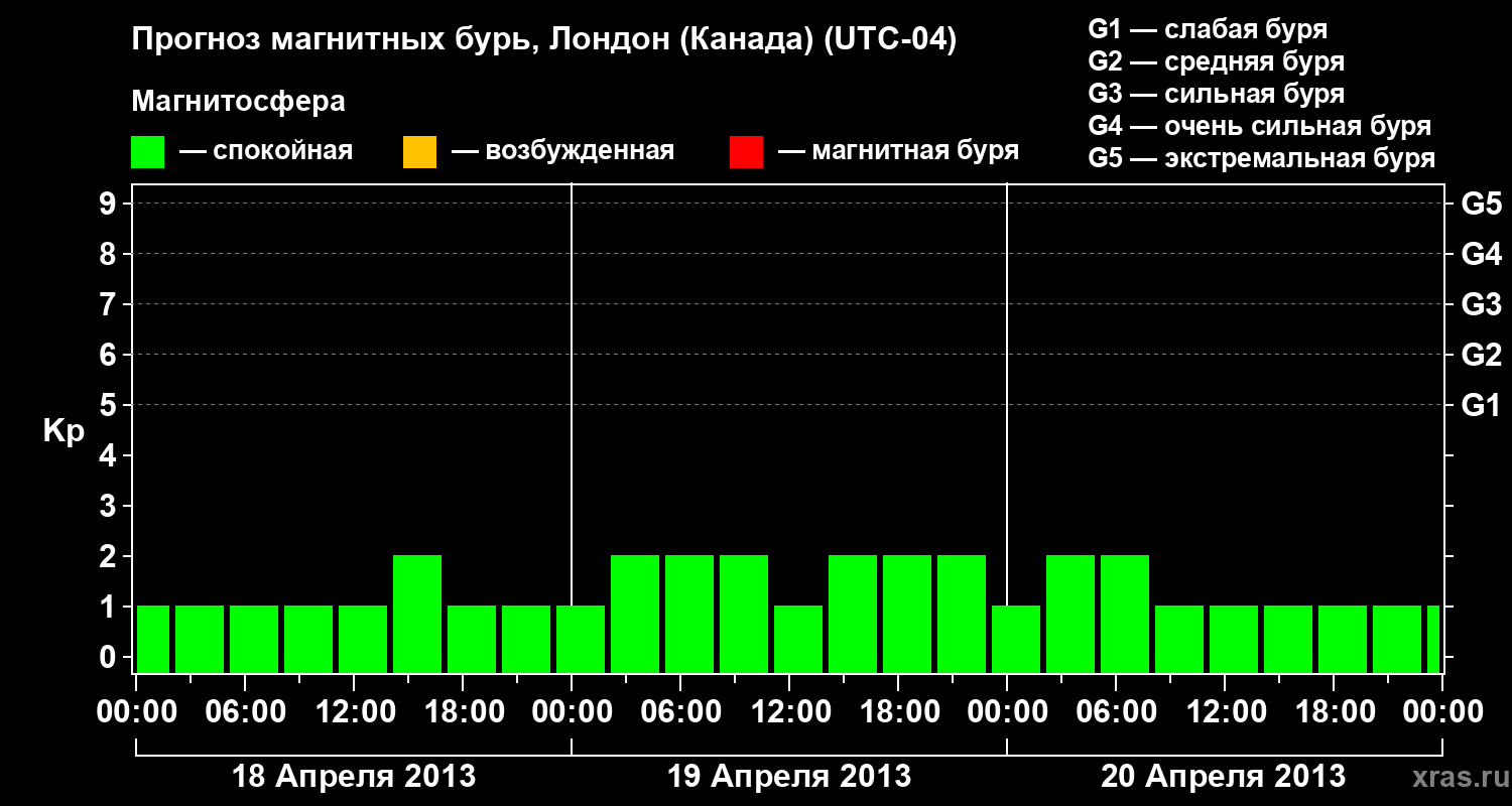 Прогноз магнитных бурь Лондоне (Канада) — 18 апреля 2013 года