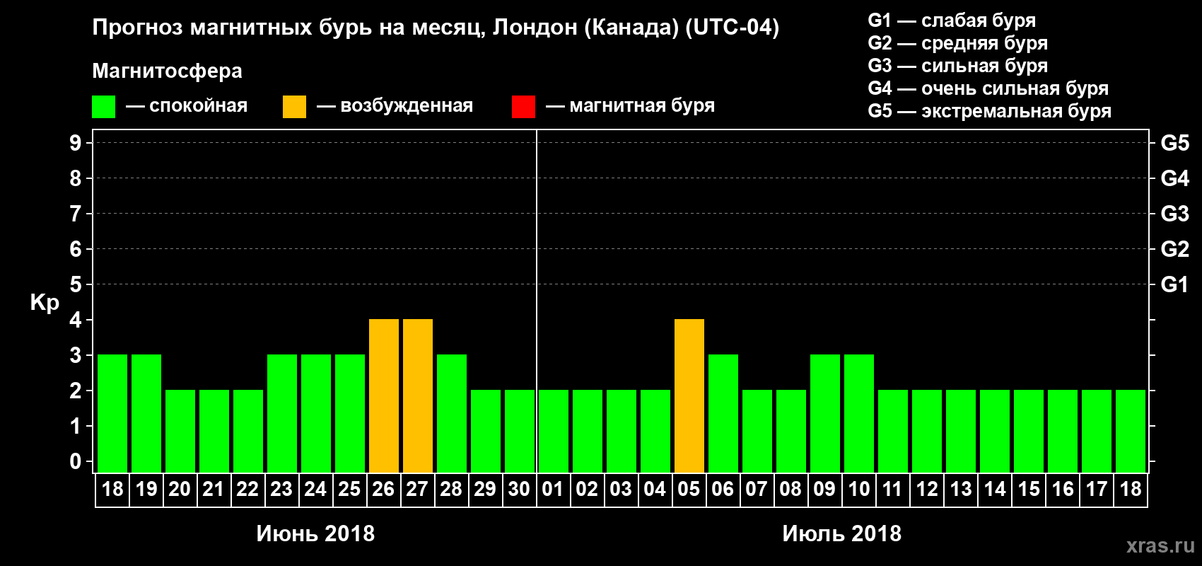 Прогноз магнитных бурь Лондоне (Канада) — 18 июня 2018 года