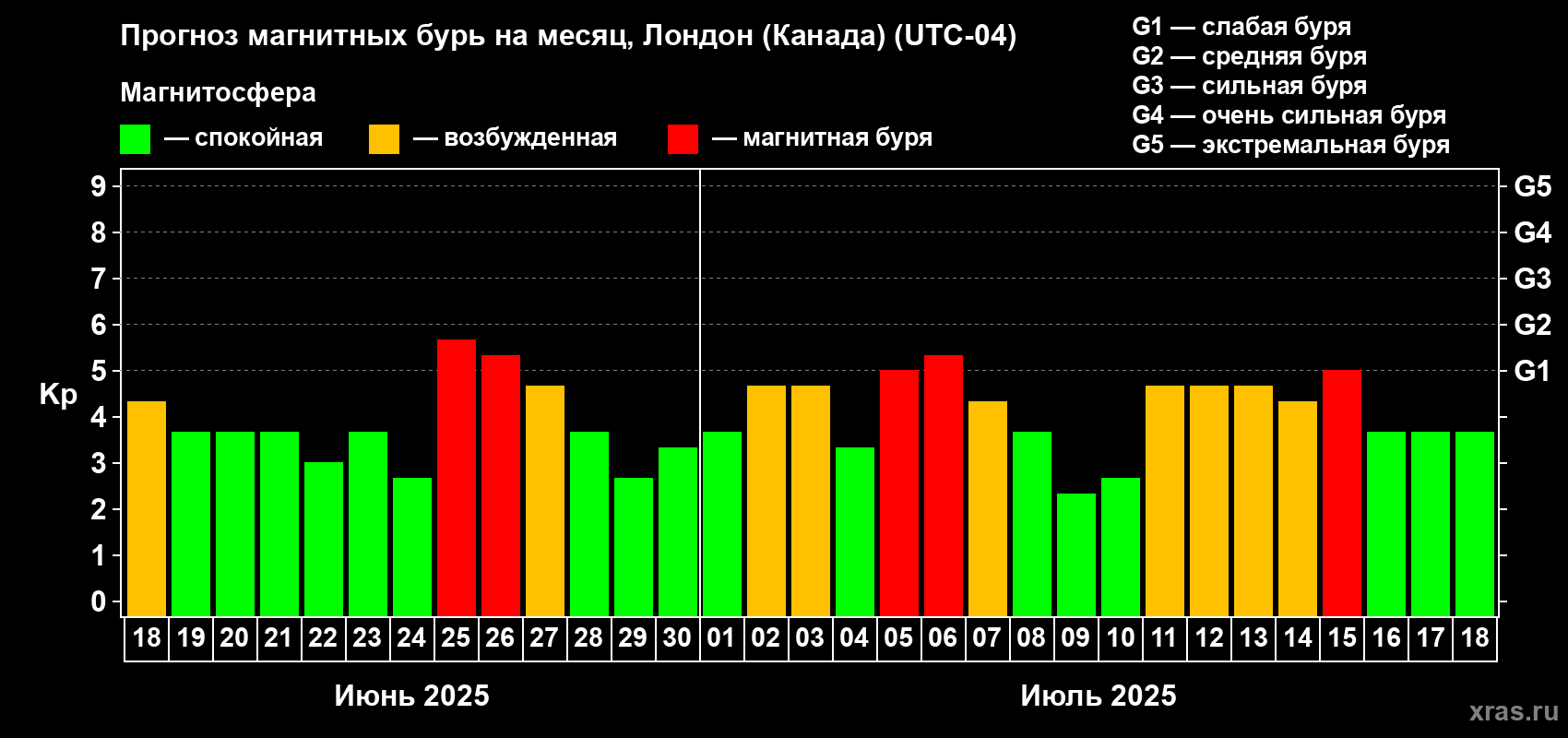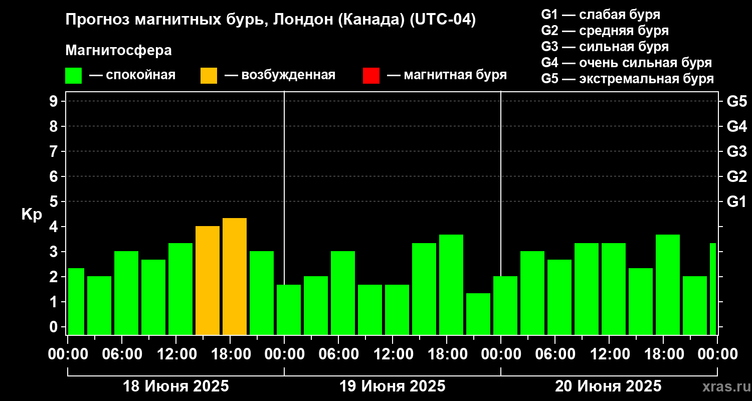Прогноз магнитных бурь Лондоне (Канада) — 18 июня 2025 года
