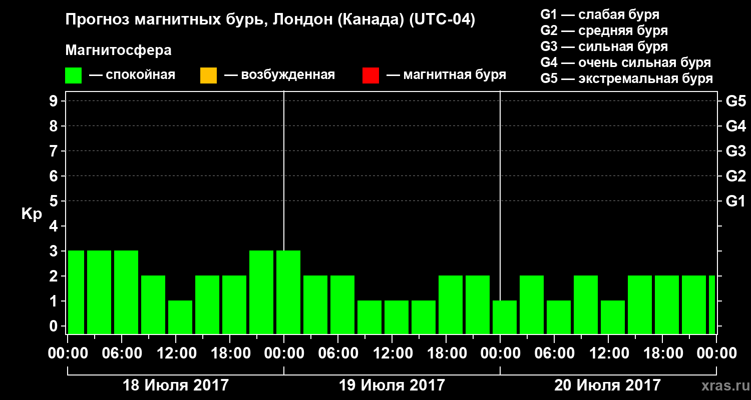 Прогноз магнитных бурь Лондоне (Канада) — 18 июля 2017 года