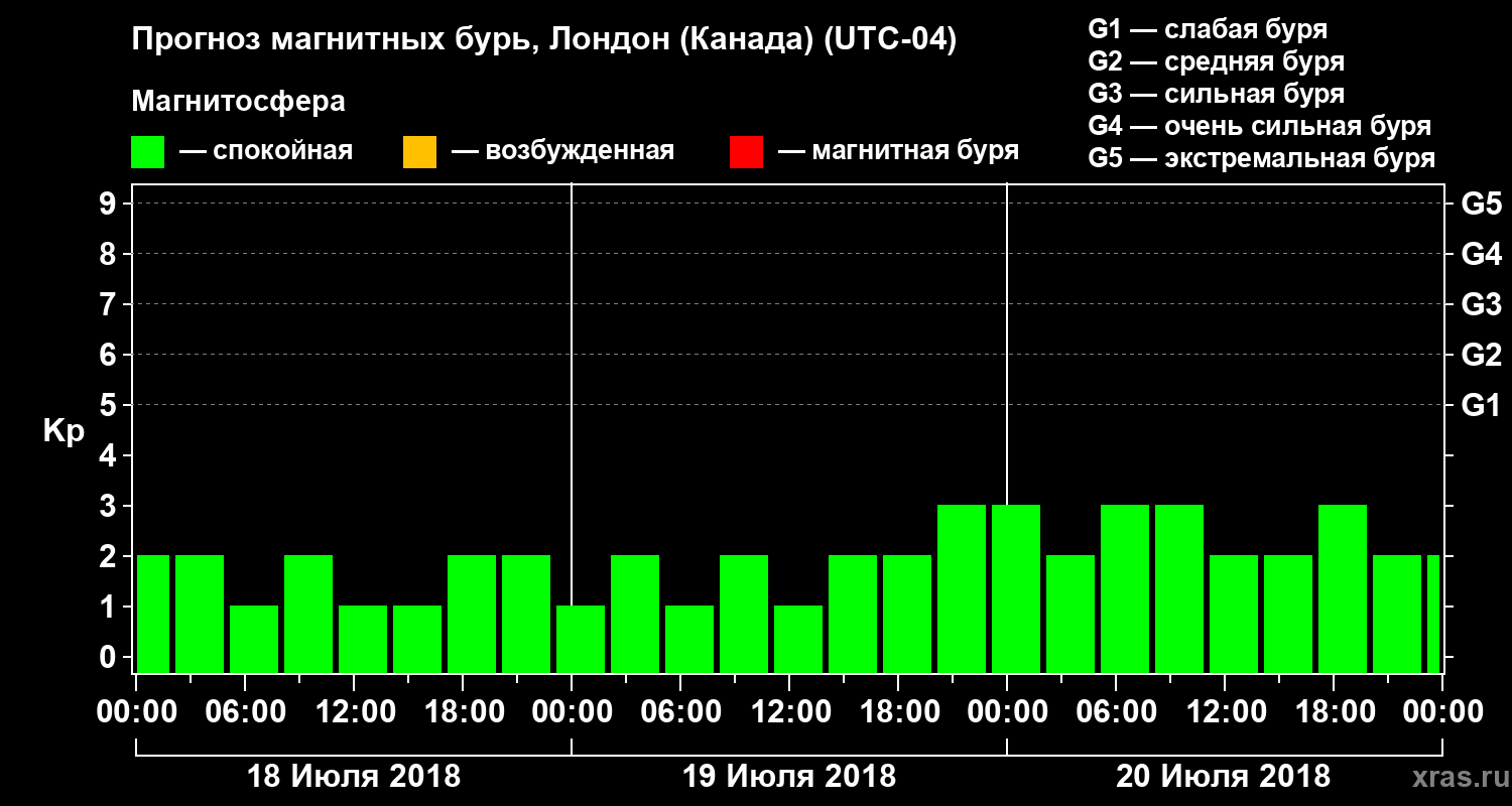 Прогноз магнитных бурь Лондоне (Канада) — 18 июля 2018 года