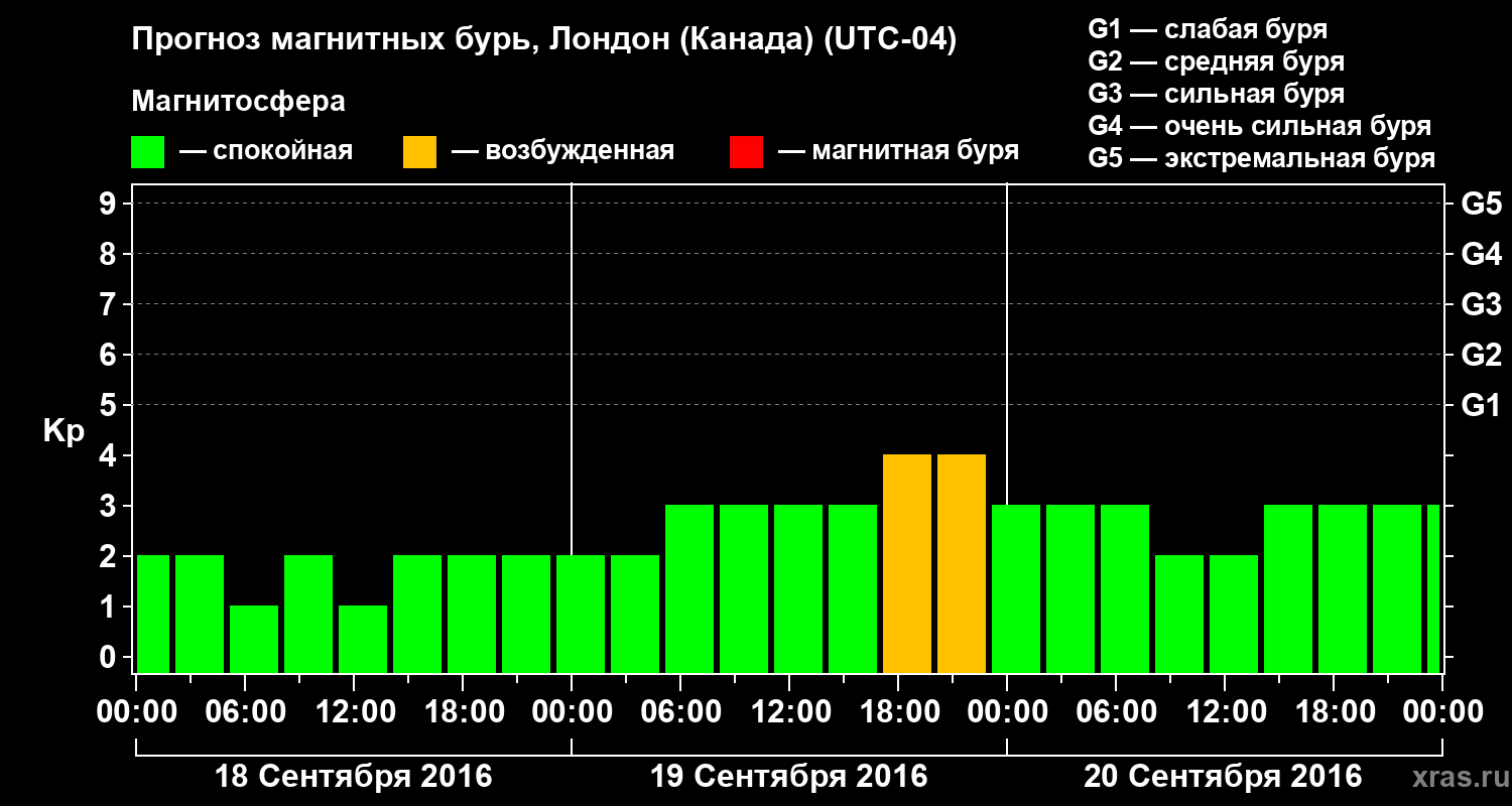 Прогноз магнитных бурь Лондоне (Канада) — 18 сентября 2016 года