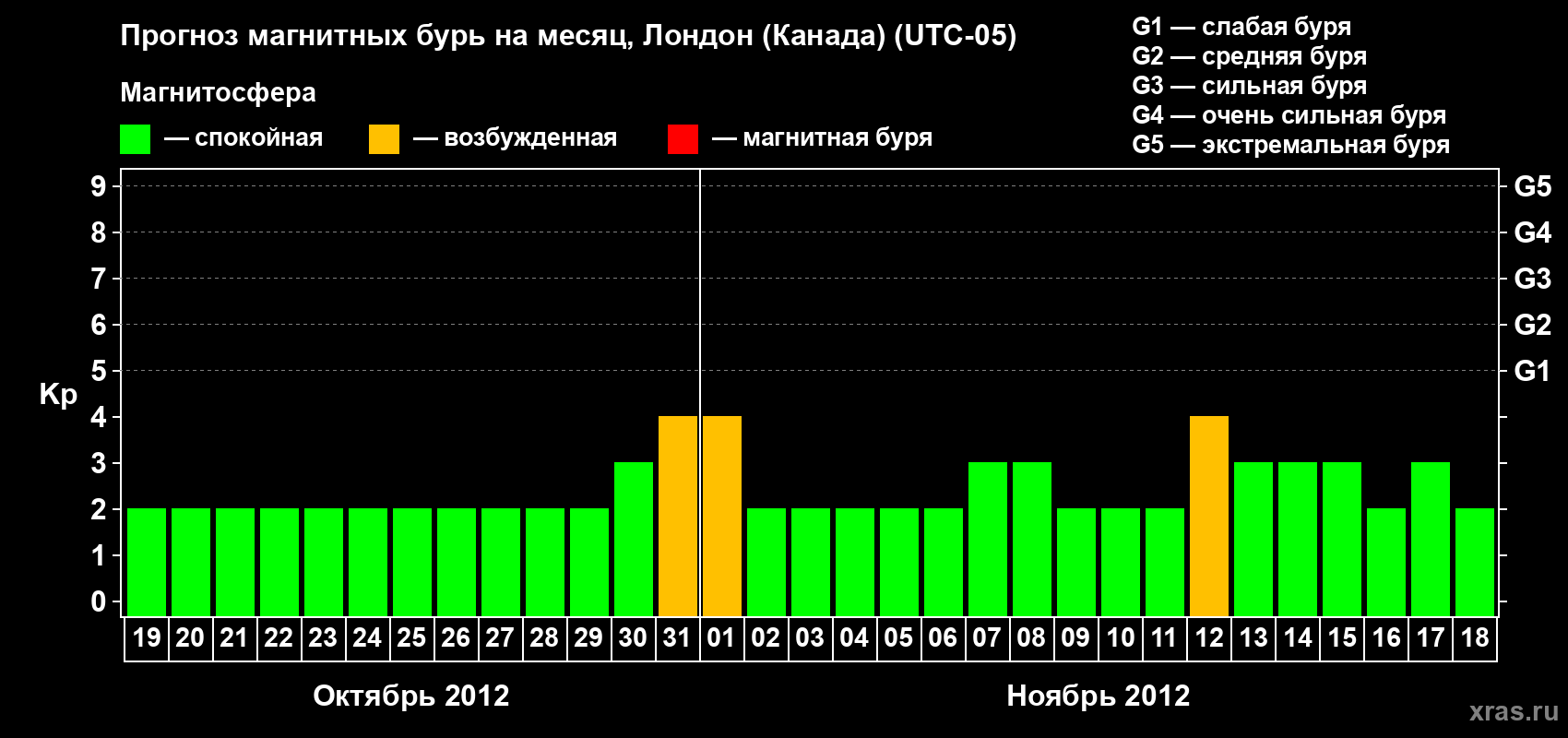 Прогноз магнитных бурь Лондоне (Канада) — 19 октября 2012 года