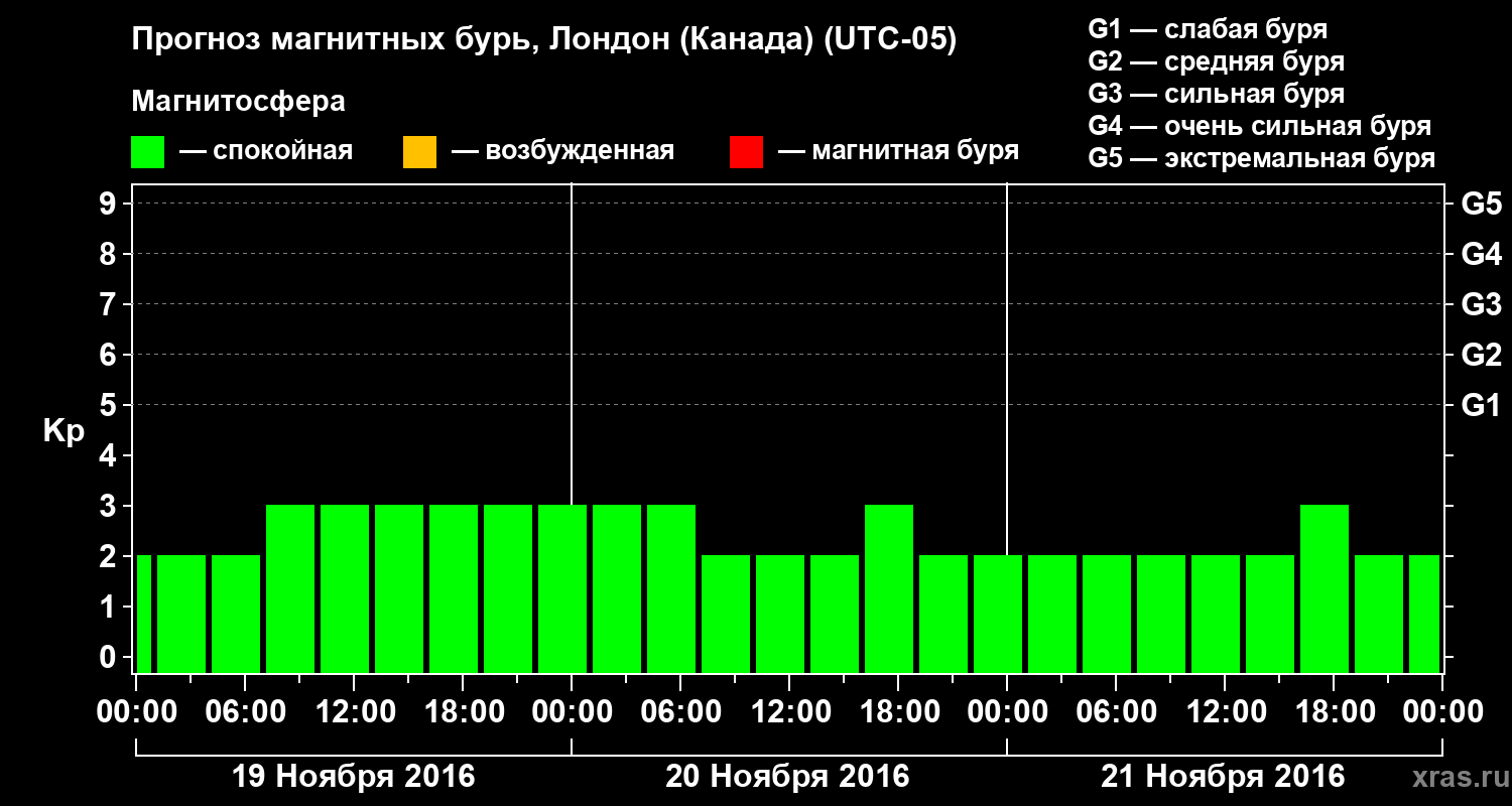 Прогноз магнитных бурь Лондоне (Канада) — 19 ноября 2016 года
