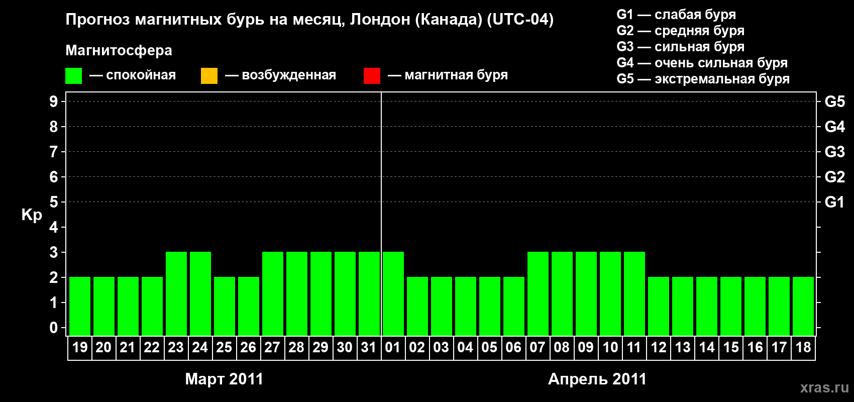 Прогноз магнитных бурь Лондоне (Канада) — 19 марта 2011 года