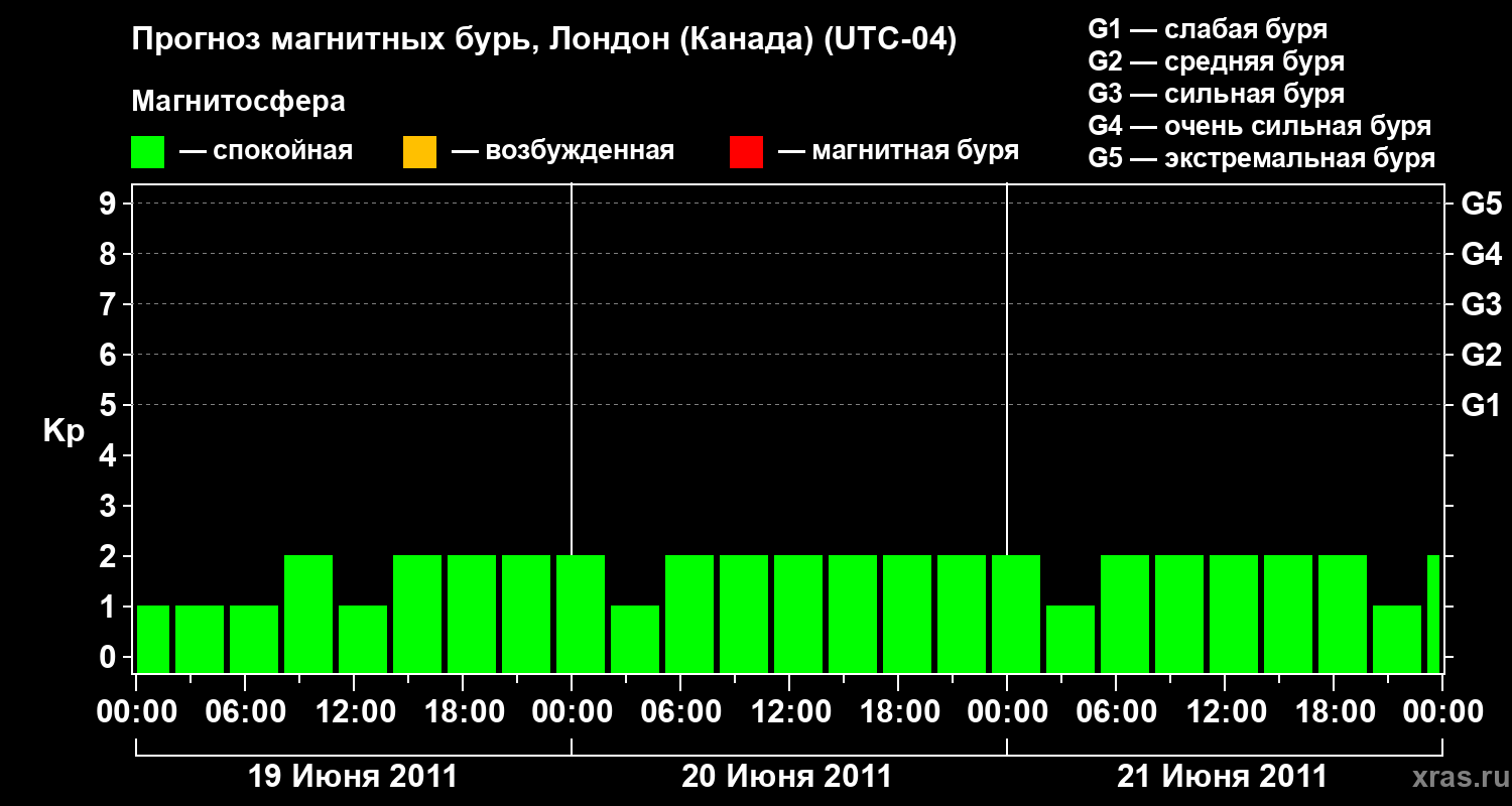 Прогноз магнитных бурь Лондоне (Канада) — 19 июня 2011 года