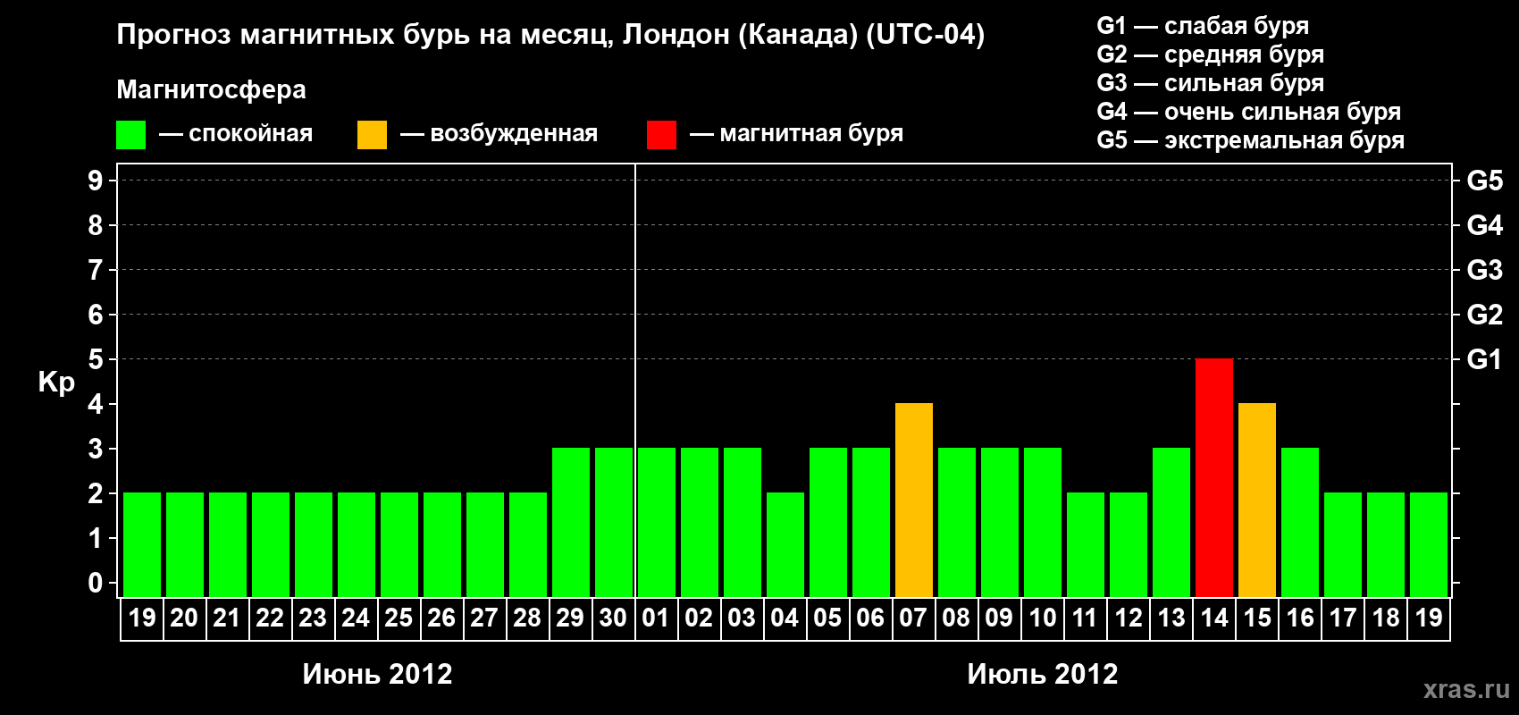Прогноз магнитных бурь Лондоне (Канада) — 19 июня 2012 года