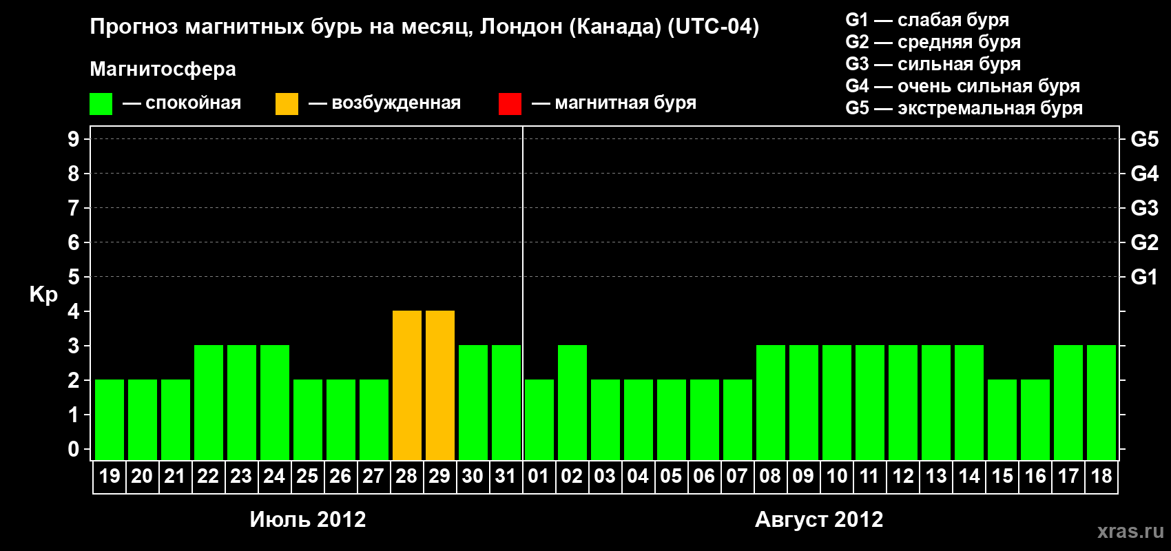 Прогноз магнитных бурь Лондоне (Канада) — 19 июля 2012 года