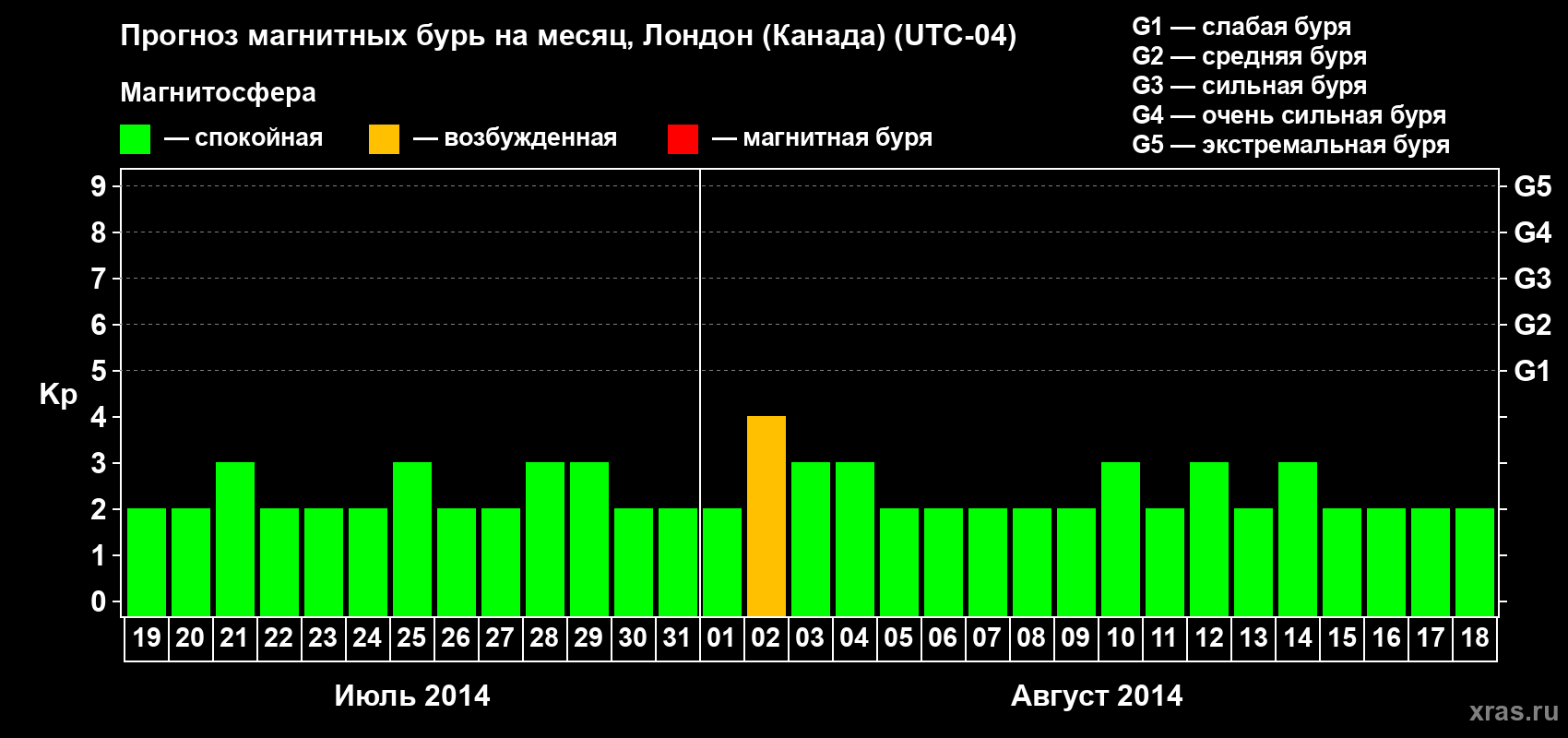 Прогноз магнитных бурь Лондоне (Канада) — 19 июля 2014 года
