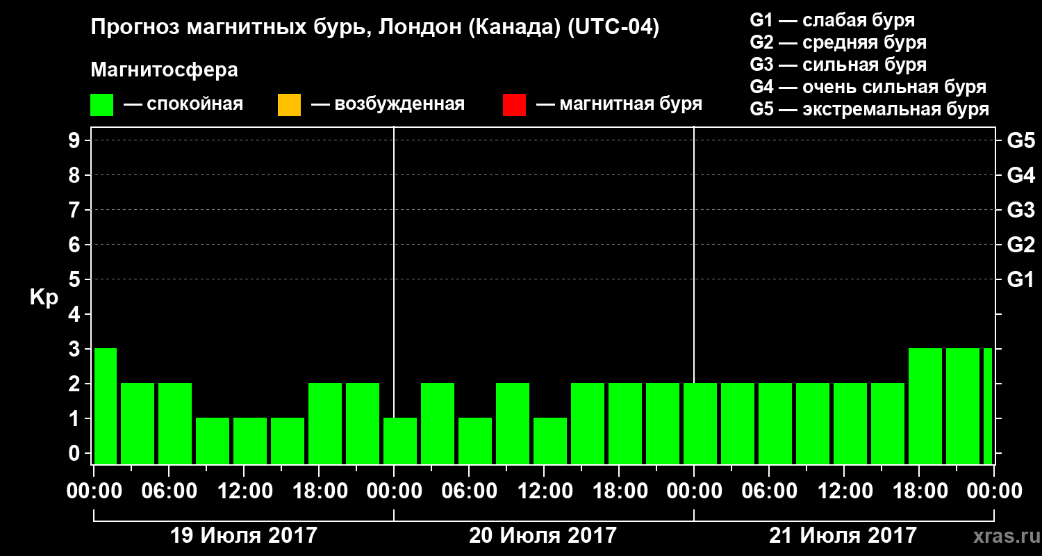 Прогноз магнитных бурь Лондоне (Канада) — 19 июля 2017 года