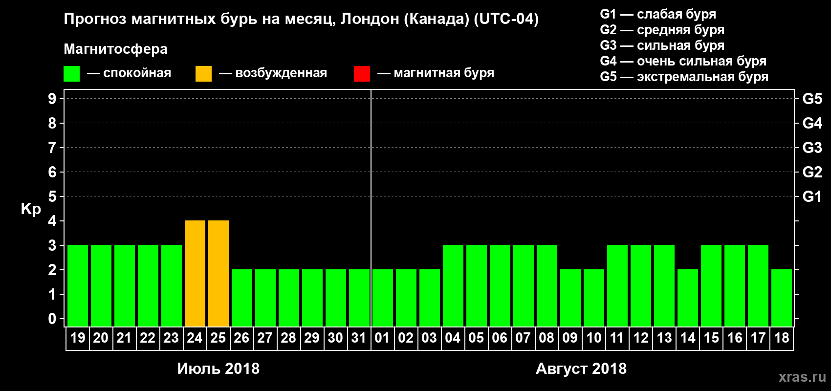 Прогноз магнитных бурь Лондоне (Канада) — 19 июля 2018 года