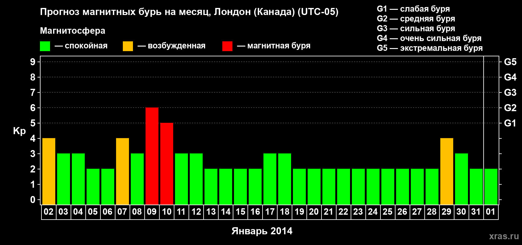 Прогноз магнитных бурь Лондоне (Канада) — 2 января 2014 года