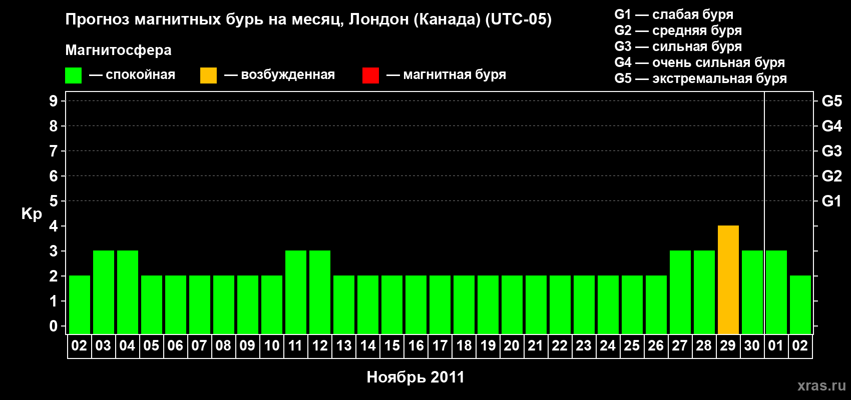 Прогноз магнитных бурь Лондоне (Канада) — 2 ноября 2011 года