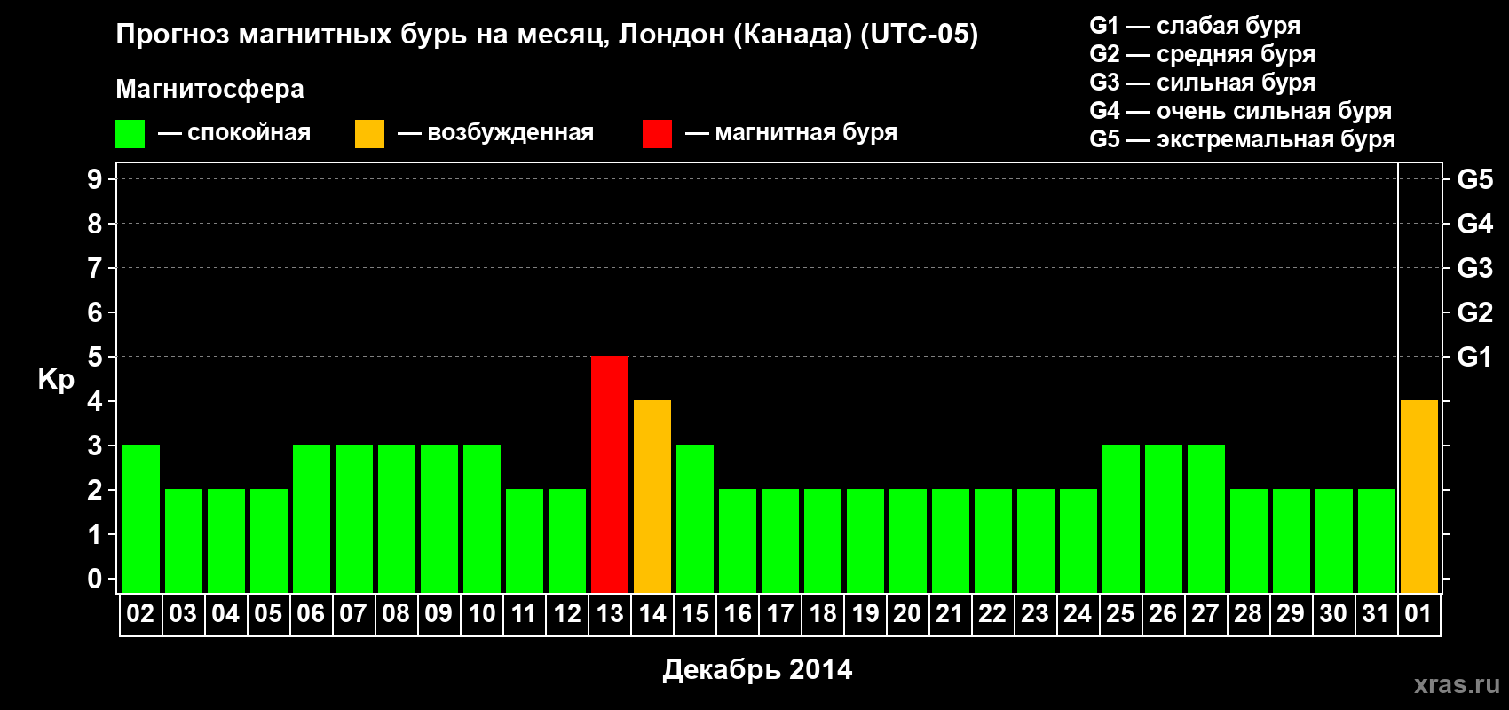 Прогноз магнитных бурь Лондоне (Канада) — 2 декабря 2013 года